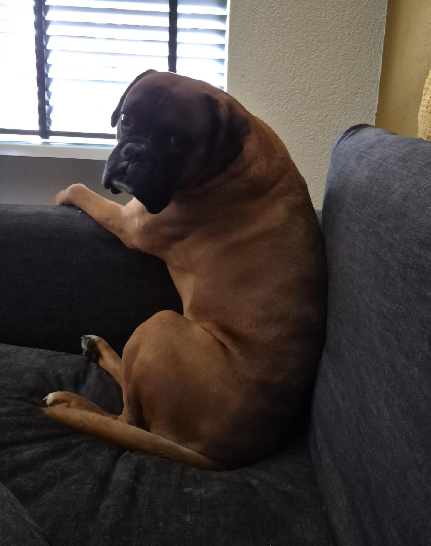 Lief. Een clown. Houdt van wandelen en kan los lopen. Blijft goed bij je. Hij snapt niets van spelen met een bal oid.