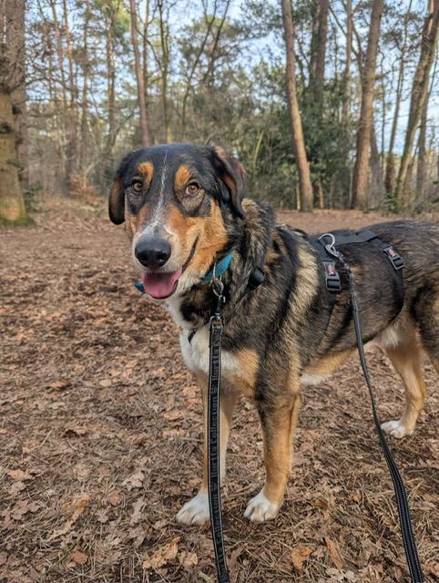 Bosko is een lieve, kalme, zachtaardige en nieuwgierige hond. Hij vind het gezellig om een stukje met je te wandelen. Hij is sociaal met mensen en andere honden. Hij geniet van aaien en knuffelen. Als hij je nog niet kent kan hij een beetje onzeker zijn, maar niet extreem angstig. Bosko logeert in een gastgezin met een paar honden. Hij vind het prima maar zoekt ze niet direct op. Hij kijkt meer naar zijn mens en of die aandacht aan hem wil geven. Hij geniet van een wandeling en trekt niet.