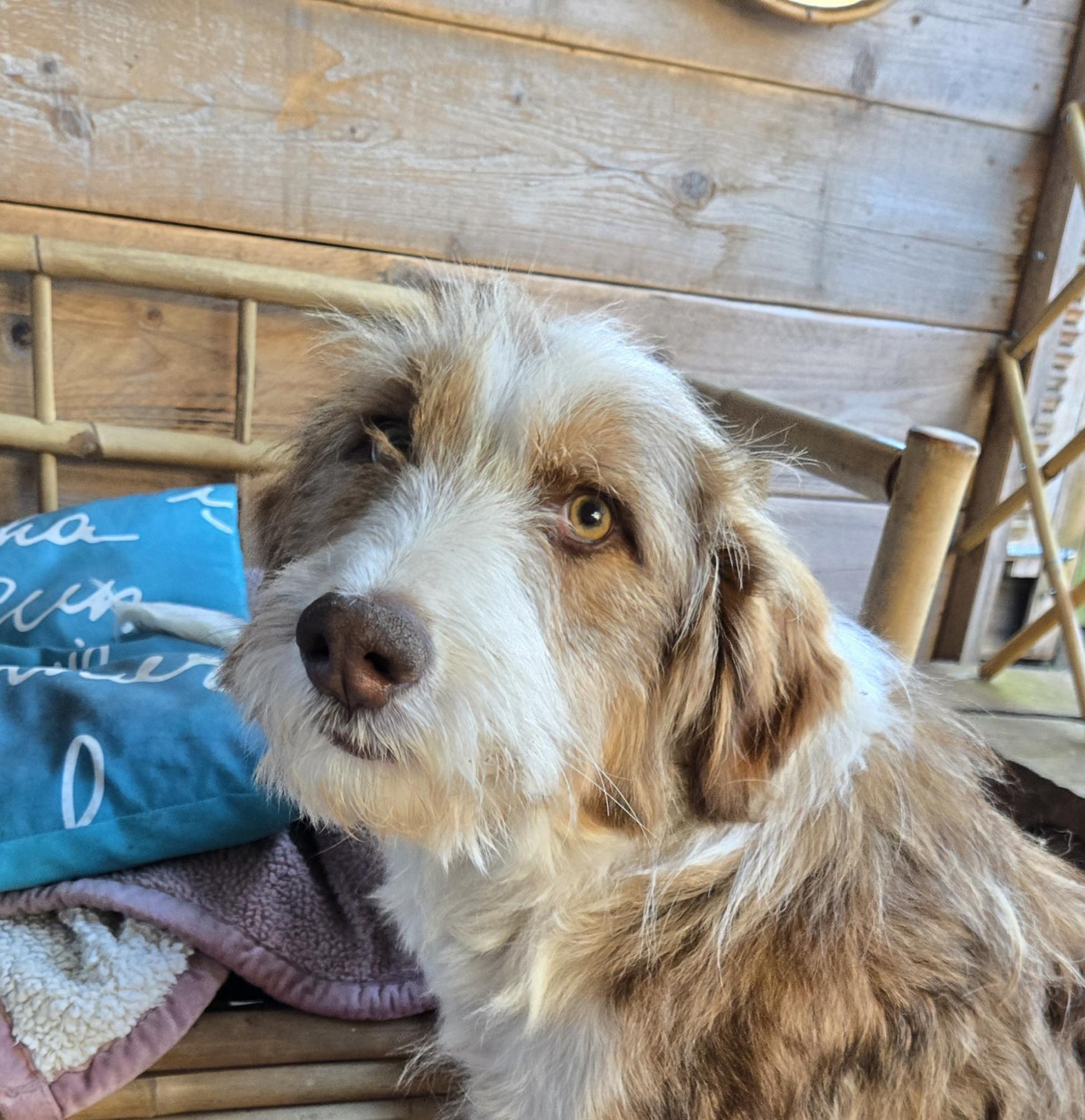 Brownie is een grote middelmaat reu geschat 24 kilo en 55 cm hoog. Vriendelijk, onderdanig en relaxed. Hij woont bij een gastgezin samen met nog wat honden , oa 2 pups.