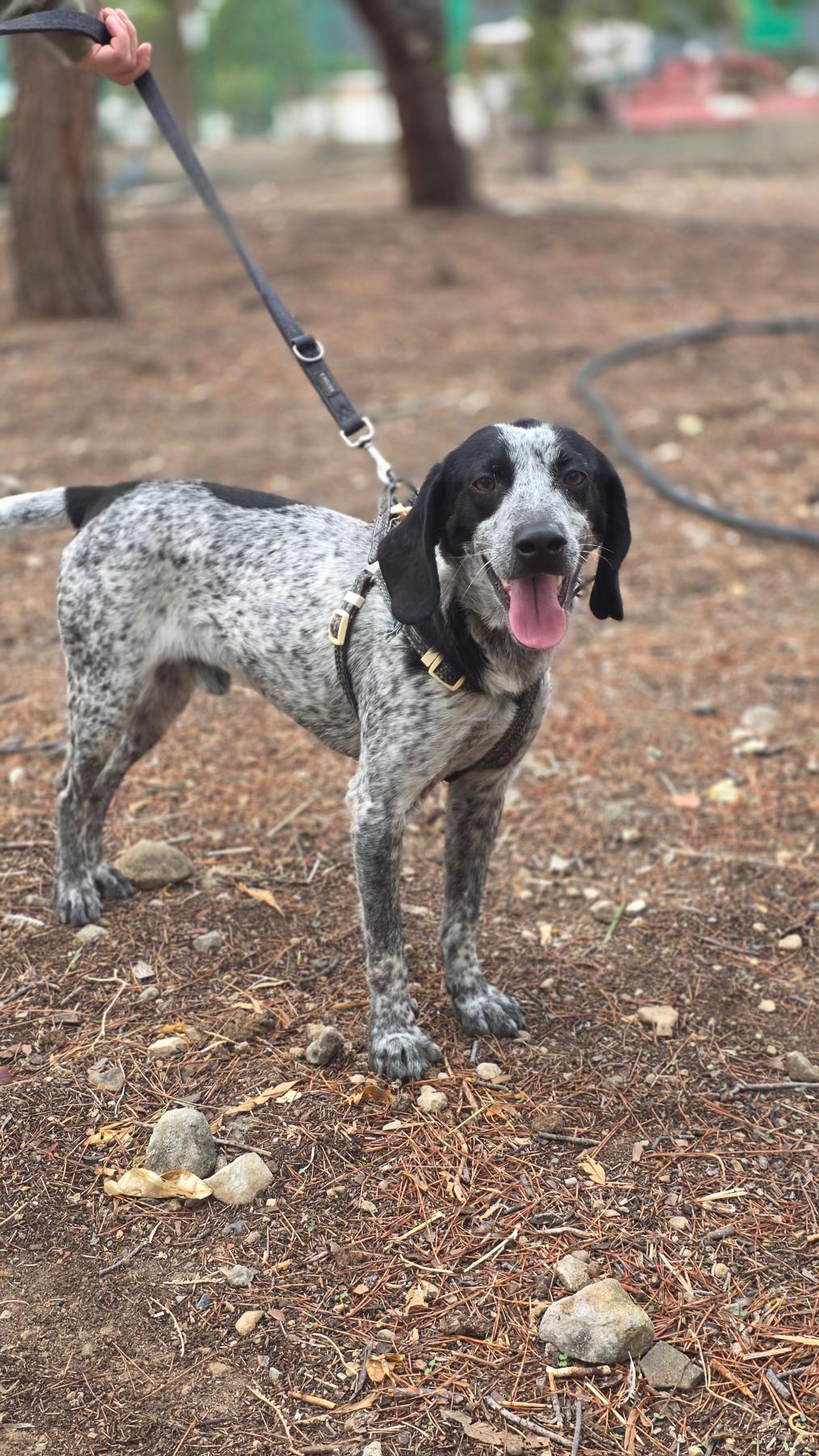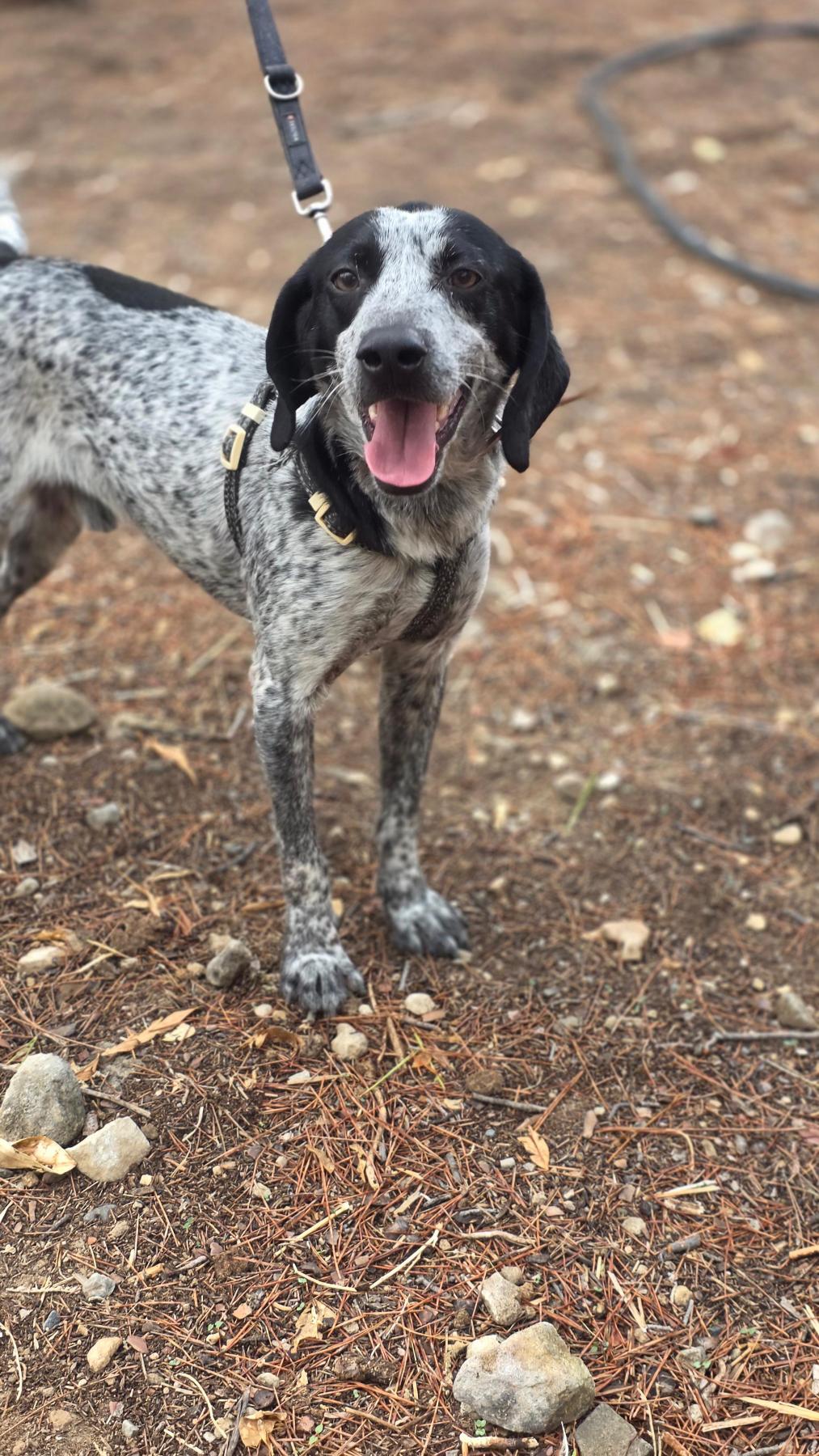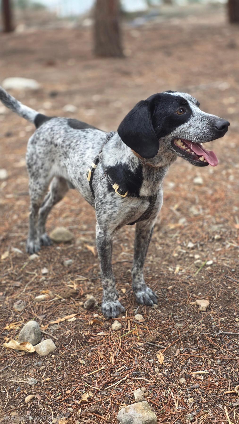🌟 Maak kennis met Bruno Bruno is een knappe Pointer-kruising, geboren op 5 december 2023. Met zijn mooie zwart-witte vacht en atletische bouw (ongeveer 14 kg en 44 cm schofthoogte) is hij iets kleiner dan gemiddeld, maar groots in persoonlijkheid