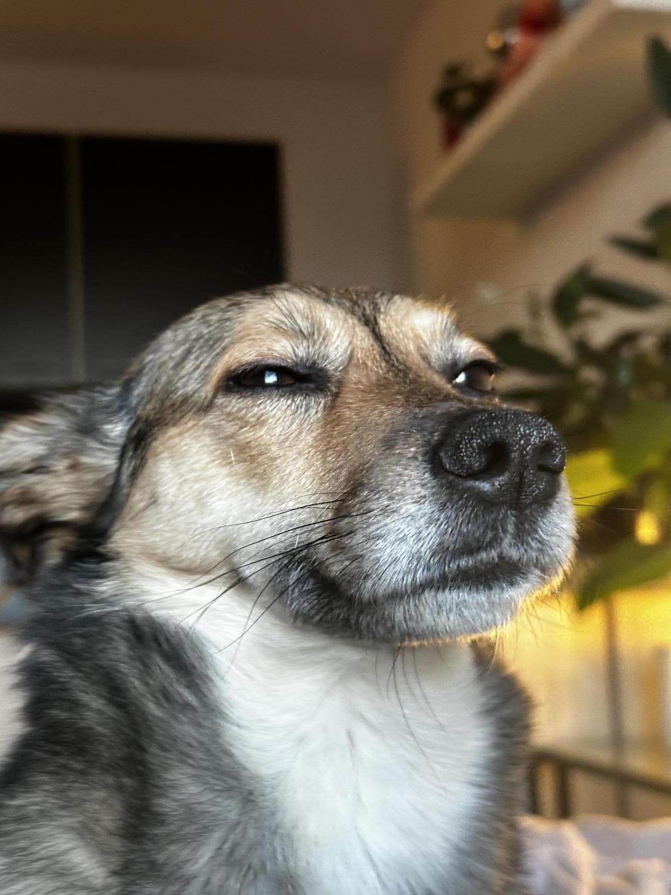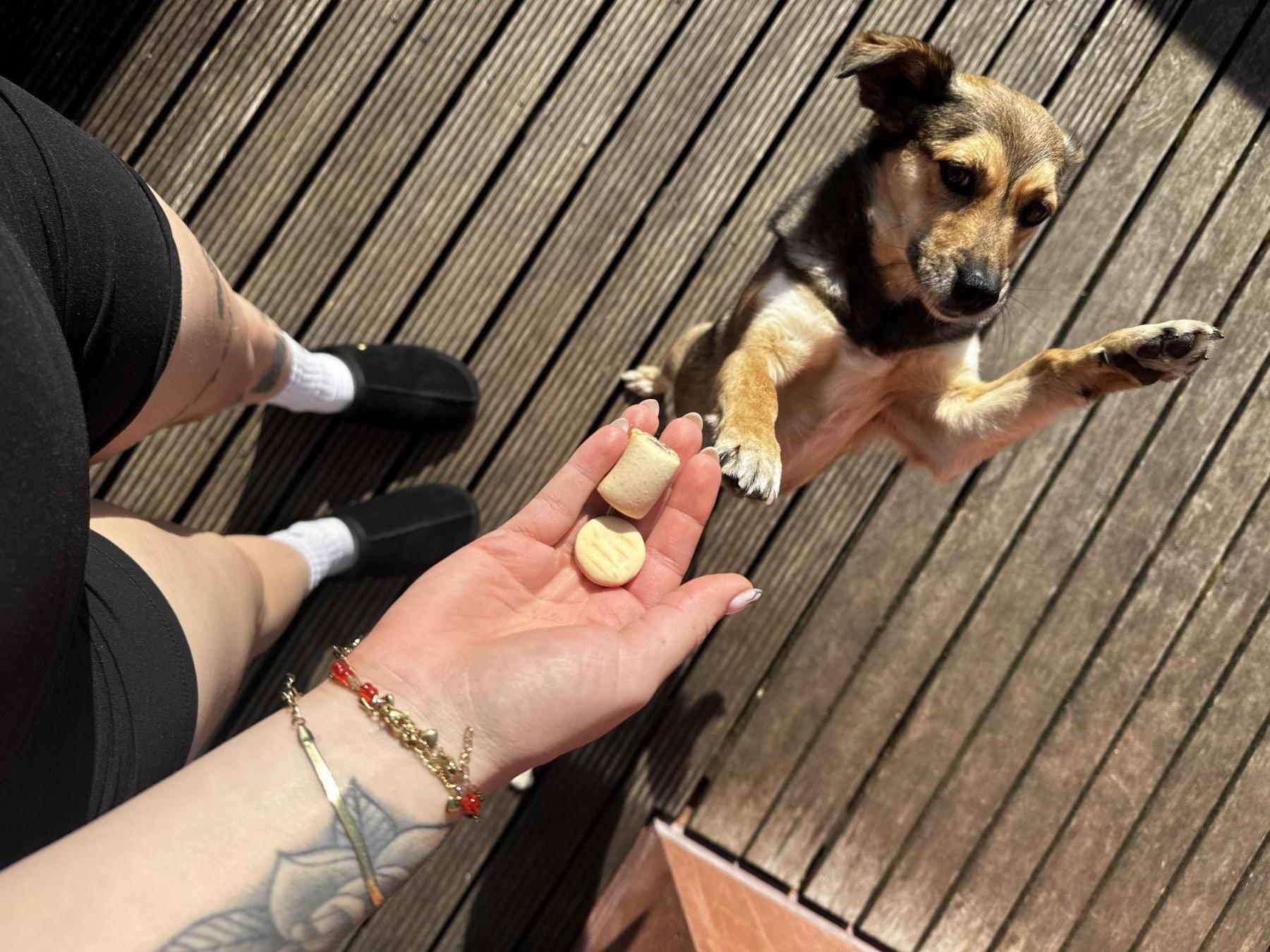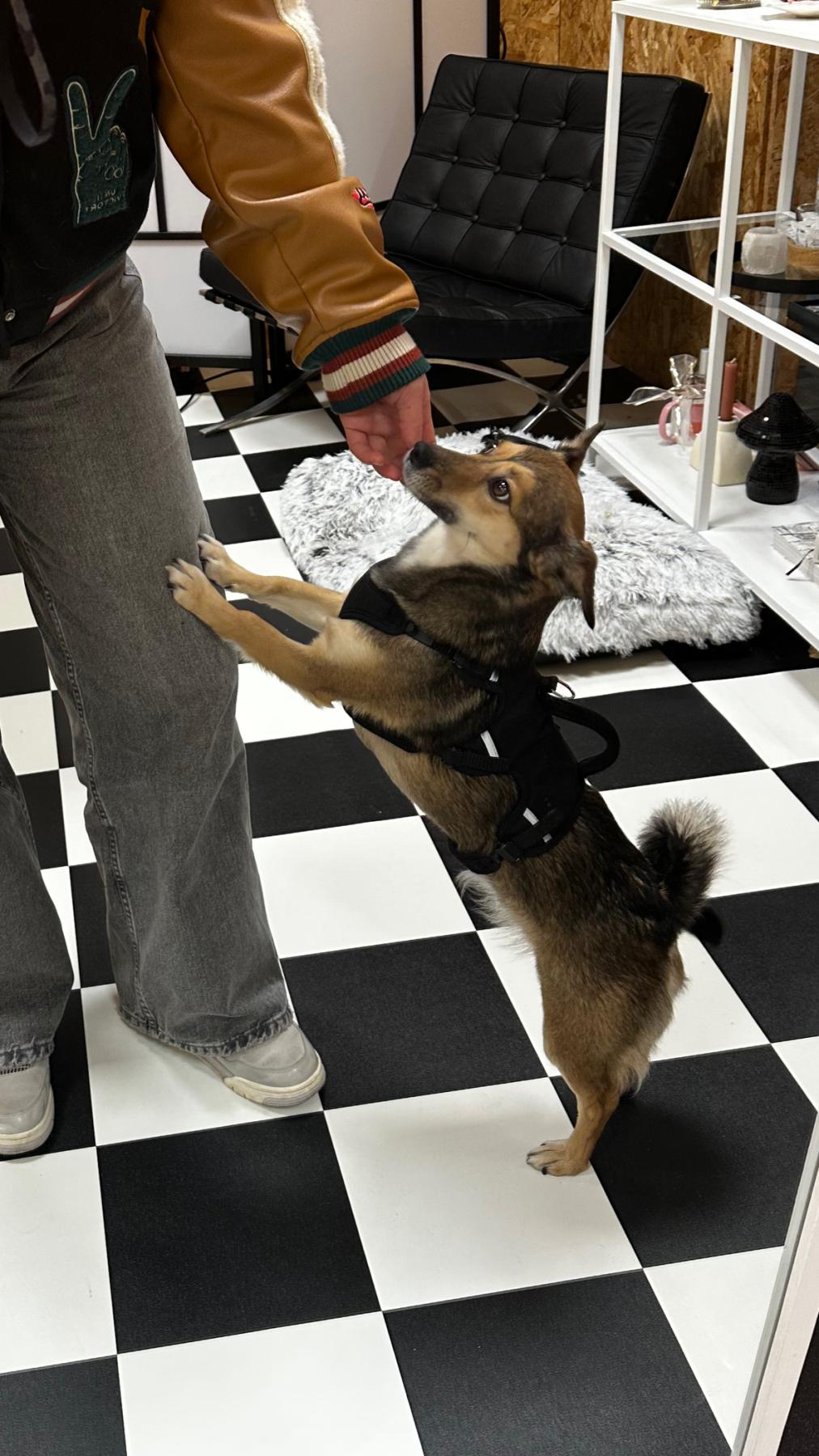 Super lief hondje. Word graag geaaid en is echt een gezelschaps beestje. Ze heeft wel wat trauma opgelopen door dat ze uit Roemenië komt als straat hondje. Zo kan ze heel moeilijk met andere hondjes en is ze nog een beetje bang voor water. Ze kan zitten en pootjes geven op commando