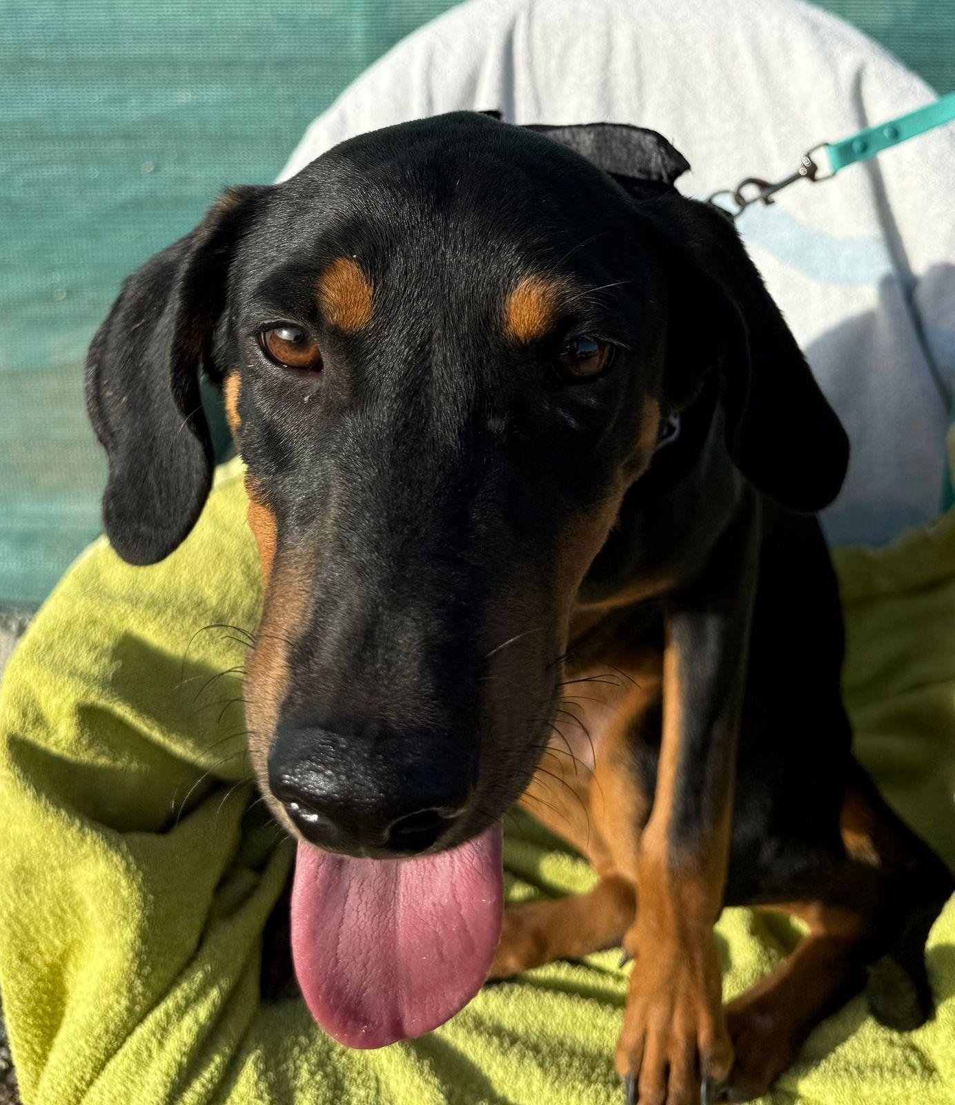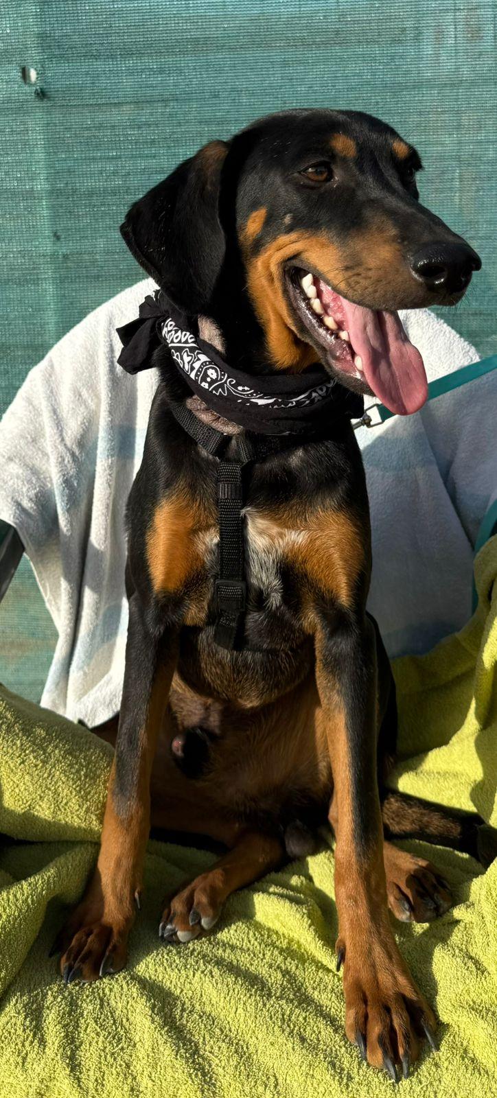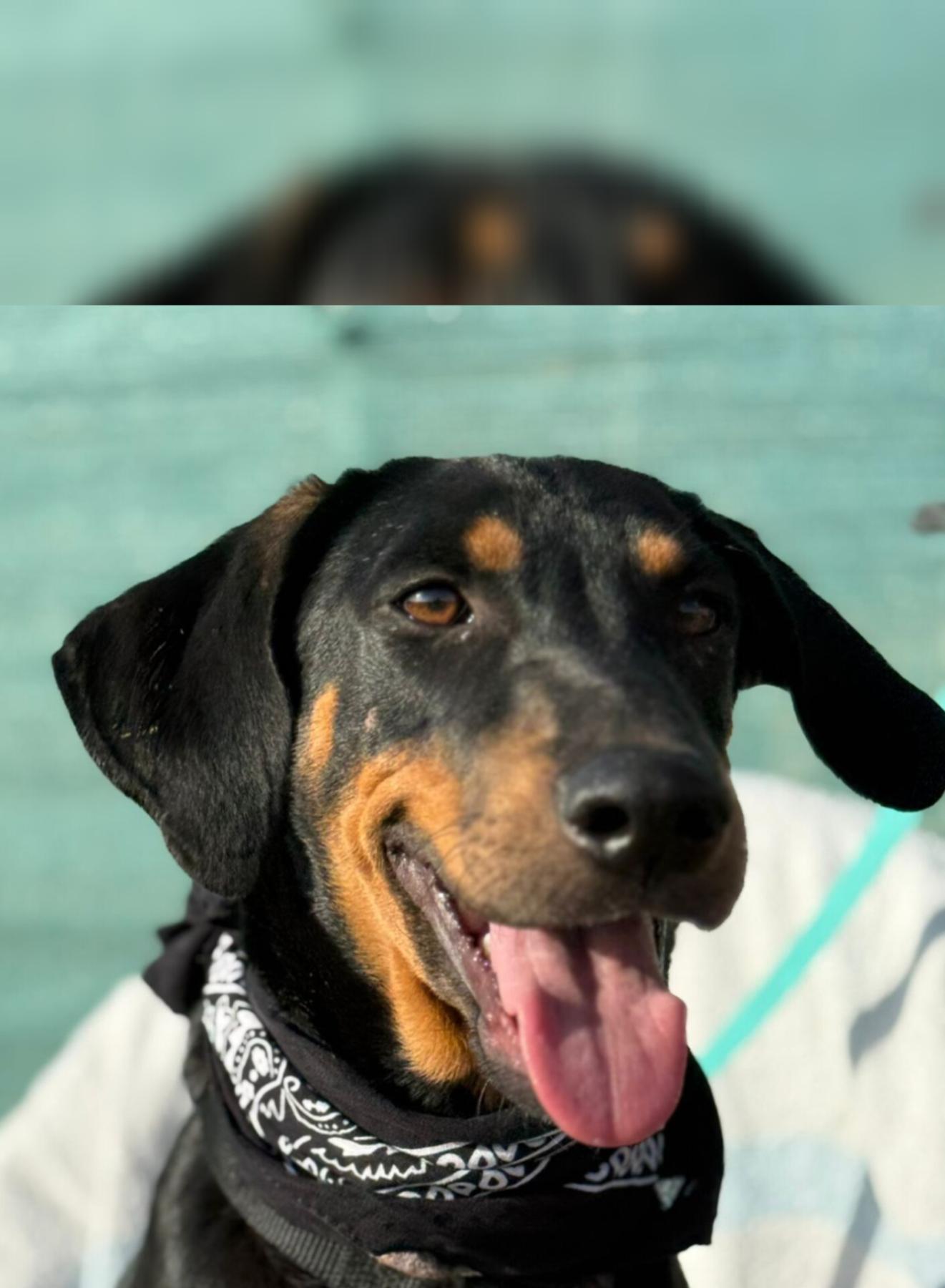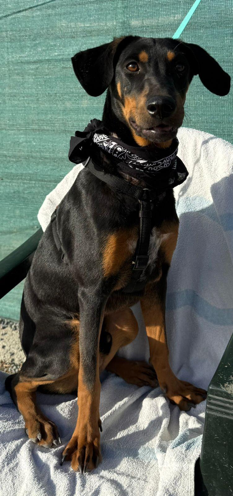 Zijn glanzende zwarte vacht met warme, lichtbruine aftekeningen en zijn vrolijke blik trekken meteen je aandacht. Maar het is zijn zachte karakter dat echt je hart steelt. ❤️