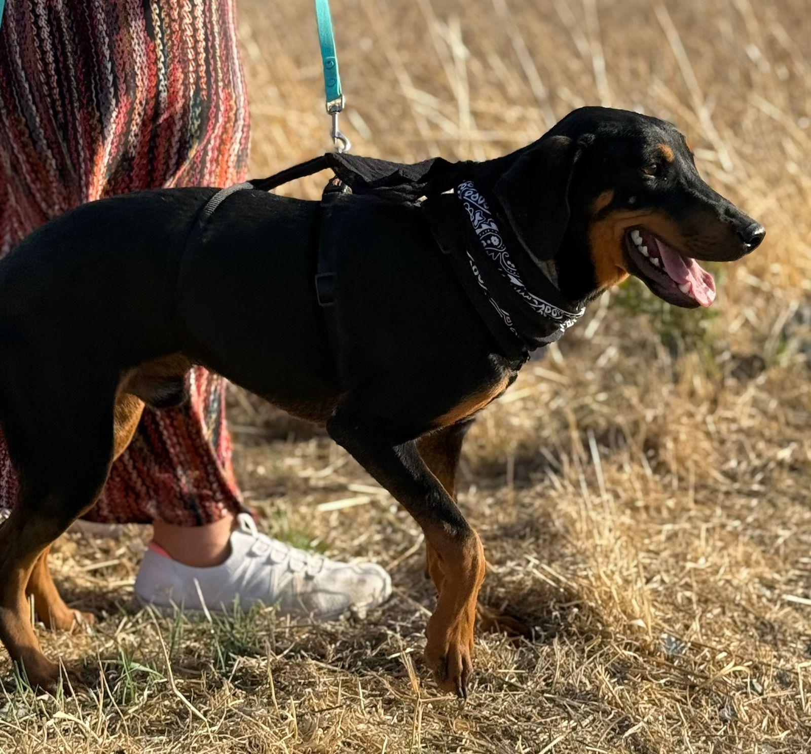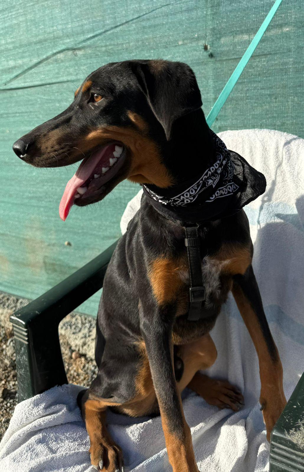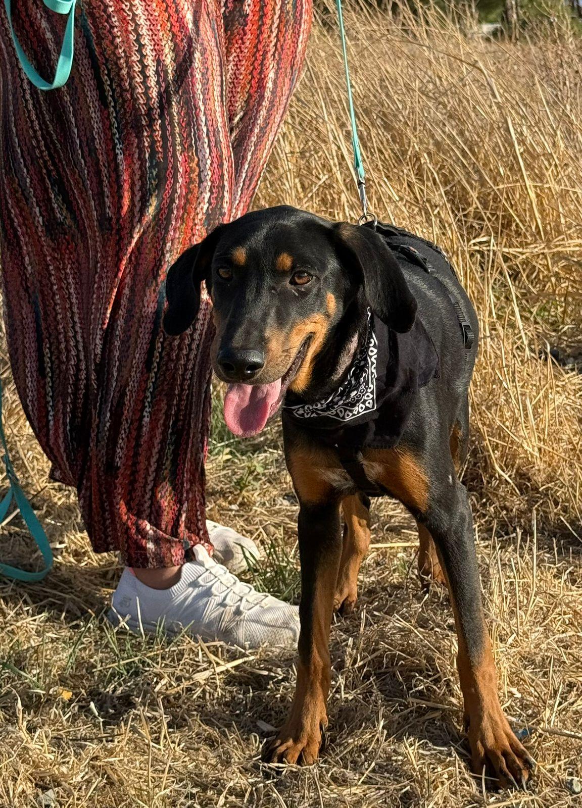 Zijn glanzende zwarte vacht met warme, lichtbruine aftekeningen en zijn vrolijke blik trekken meteen je aandacht. Maar het is zijn zachte karakter dat echt je hart steelt. ❤️