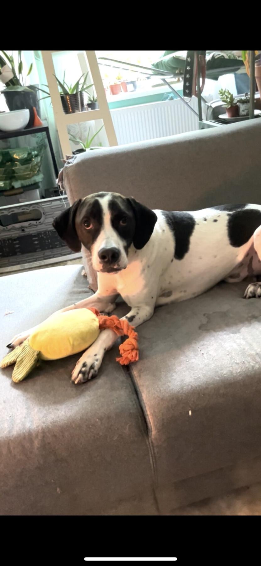 Cooper is geboren in maart 2024, ongeveer 57 cm hoog en weegt zo’n 20 kg. Hij is geënt, gechipt en ontwormd en verblijft nu in een opvanggezin in Hoogeveen, waar hij met liefde bezocht kan worden