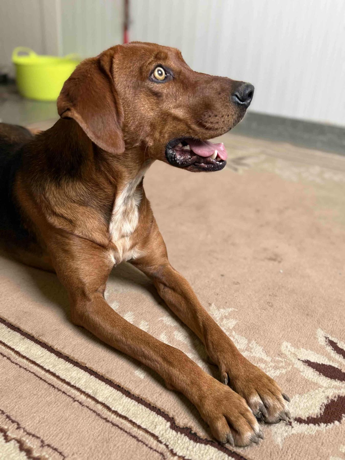 Ik ben Dana! Ik ben een jachthond van ongeveer 2 jaar en ik ben gevonden waarna ik veilig in een asiel in Bulgarije terecht ben gekomen.