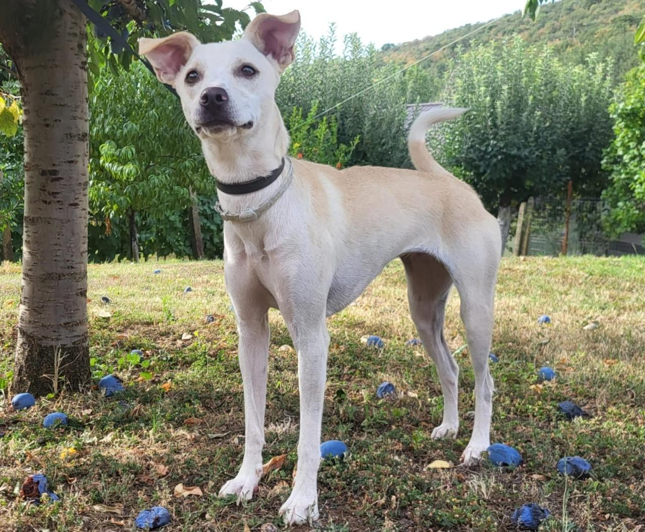 Diji is als pup op straat gegooid. Ze was geadopteerd door een geweldige familie, de vrouw heeft een allergie voor dierenhaar. Toch wist ze een weg te vinden het diertje in huis te halen. Ze raakte zwanger van haar tweede kindje en dat verergerde haar allergie. Het hele gezin is enorm verdrietig. Voor Diji wordt een nieuw gezin gezocht, omdat de vrouw tijdens de zwangerschap geen medicatie tegen de allergie kan gebruiken. Diji is nog jong. Ze is gesteriliseerd. Het is een energiek meisje en ze kan goed overweg met kinderen en andere dieren. Ze is gewend aan het leven in huis (let op! Na een verhuizing moet een dier altijd tijd krijgen om de nieuwe regels te begrijpen!). Als je bulgaars spreekt, ze kent basis commando's. In het appartement waar ze woont is ze braaf, ze sloopt niet. Ze speelt met haar speeltjes. Op dit moment kunnen ze niet anders dan haar in de tuin te laten logeren. Ze is dat niet gewend en daar is ze onrustig en gaat ze blaffen van ellende. Ze wil binnen wonen. Ze voelt zich ongelukkig en de familie wil het beste voor haar. Als ze binnen mag wonen is ze kalm. Ze is bang in de tuin. Er is ons gevraagd mee te zoeken naar een huisje voor Diji.