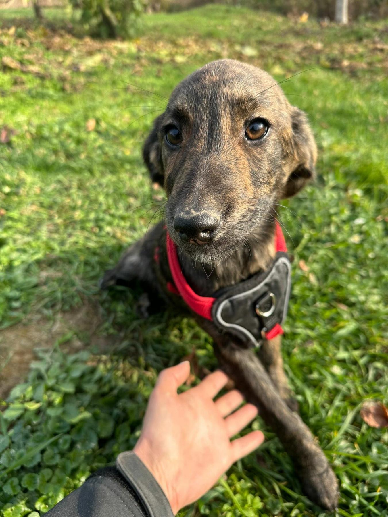 Dima is een lief en kalm meisje uit Bosnië, geboren op 26 juni 2025. Ze is ongeveer 37 cm hoog en weegt rond de 7 kilo – een slanke, sierlijke pup die met haar rustige uitstraling meteen het hart raakt.