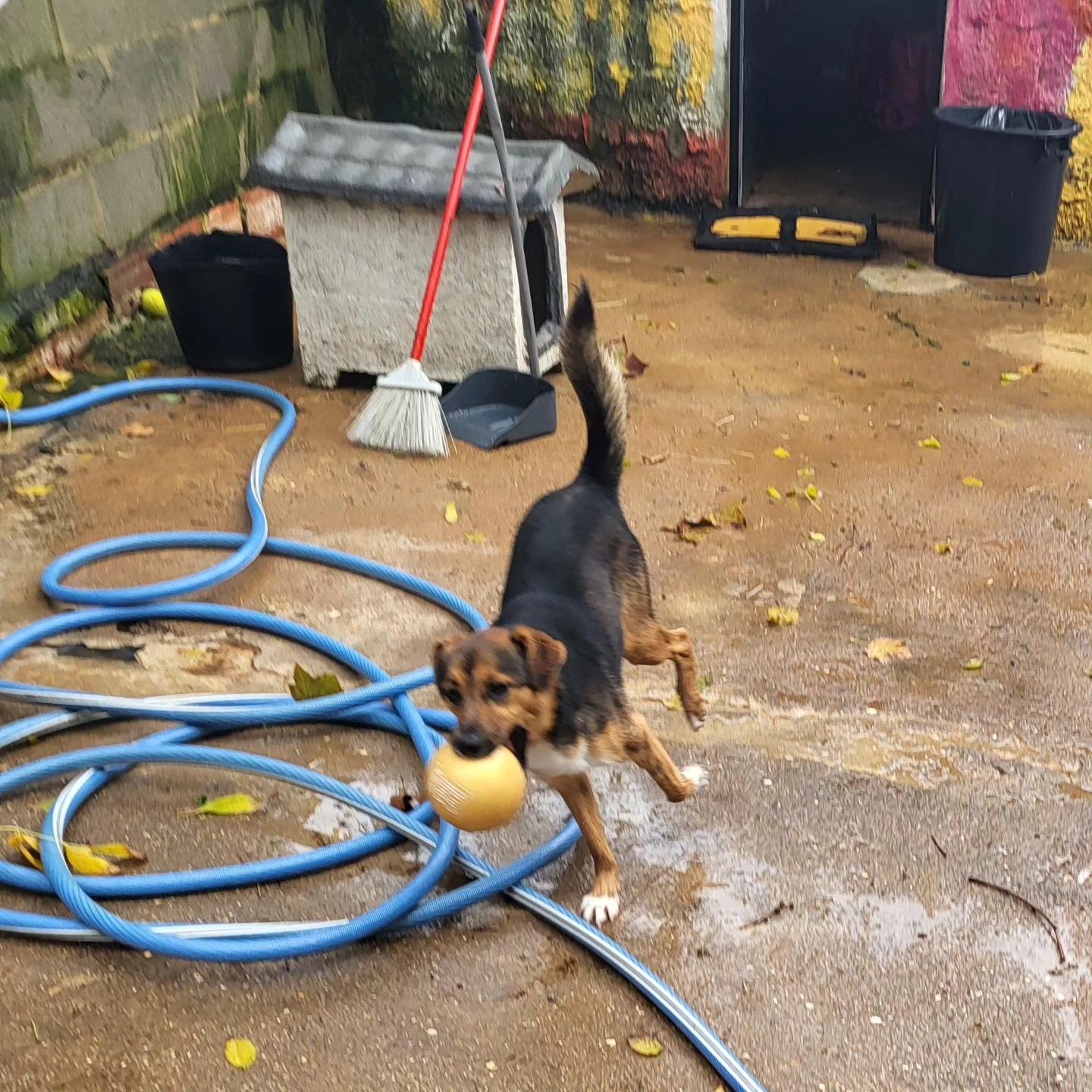 DINO is 1,5 jaar oud Hij is als pups geadopteerd uit een asiel en opgegroeid in een gezin met kinderen. Helaas heeft het gezin besloten op terug te emigreren naar Brazilië en hebben ze Dino november 2025 ingeleverd bij de AFA. Dino is een vrolijk kleiner hondje met een open karakter. Hij is dol op water en ravot graag met de andere honden in de kennel. Het is een beetje een doerak, soms wat ondeugend maar wel heel sympathiek. Een jonge hond met energie. Hij weet niet zo goed wat hij met katten moet, dus die geneert hij maar. Ook Dino heeft een bloedtest gedaan en is gezond. Dit is een leuke hond voor een familie of voor iemand die graag wandelt