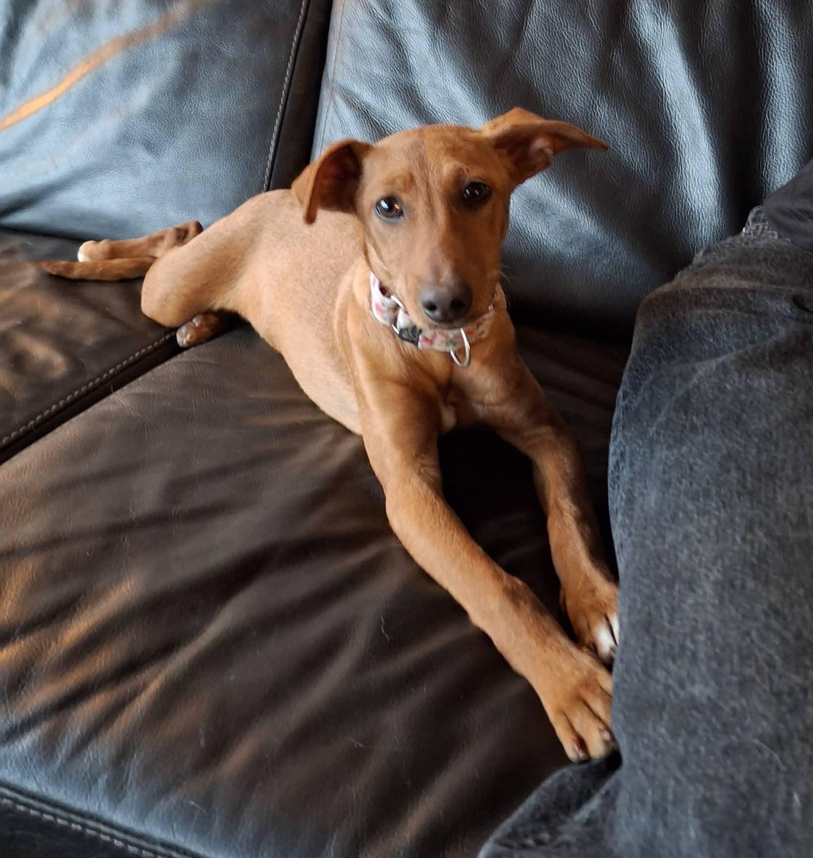 Escandinavia is een vrolijk teefje van vier maandjes jong, met een hartje zo groot als haar nieuwsgierigheid. Deze ondernemende Podenco pup verblijft momenteel in opvang in Stekene, waar ze vol enthousiasme wacht op haar eigen warme mandje. Ze is een echt blij ei: zodra ze je ziet, komt ze vrolijk naar je toe — klaar om samen te spelen of om zich heerlijk tegen je aan te nestelen voor een knuff