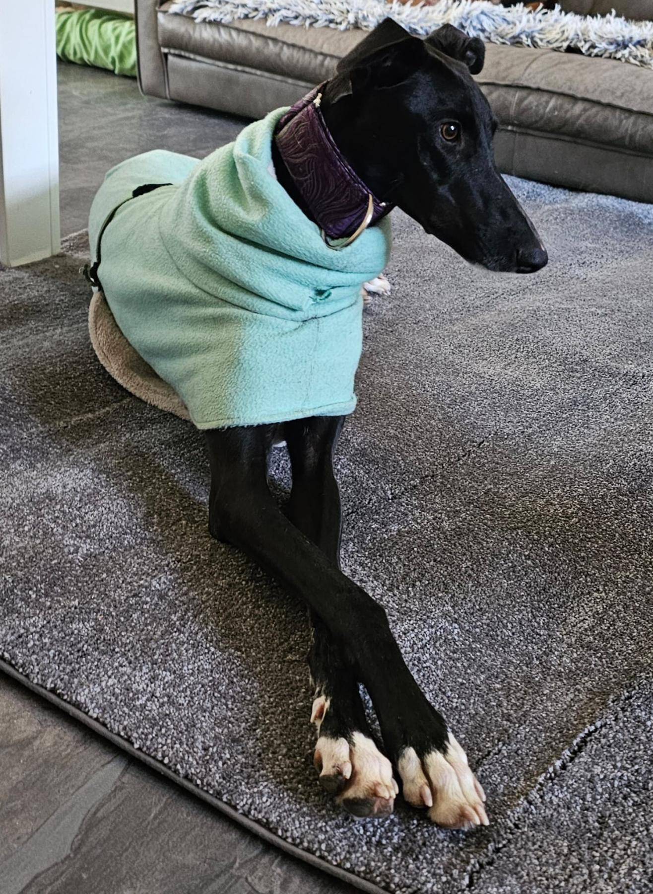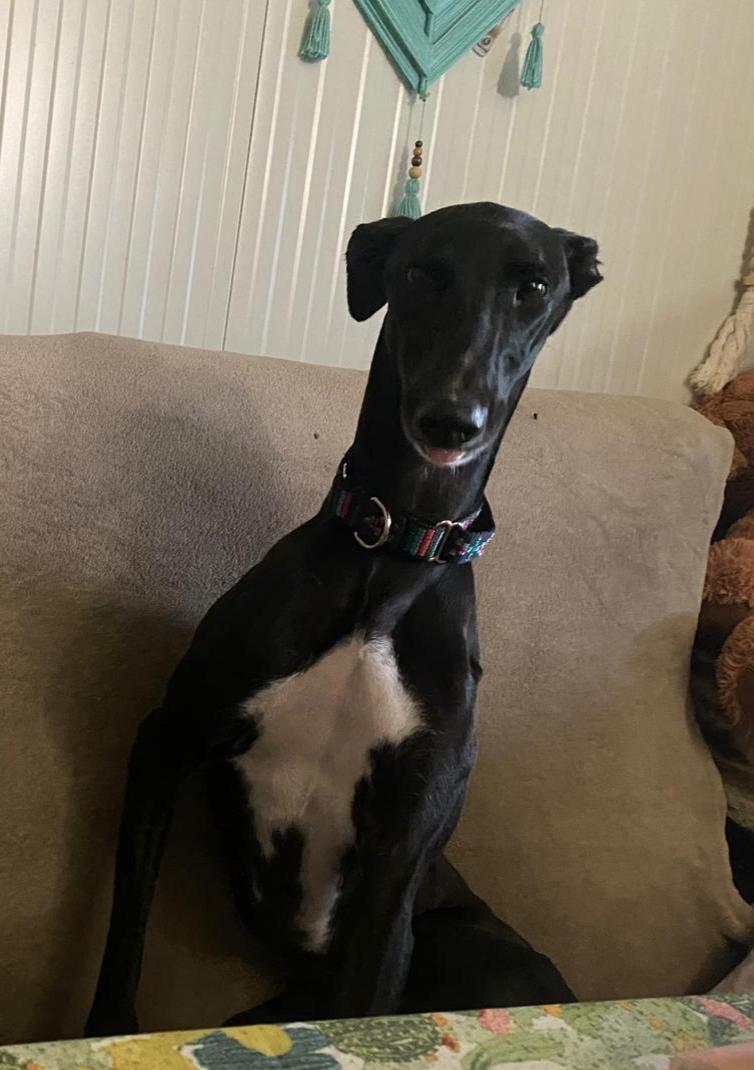 Hij heeft een zwart glimmende vacht met witte borst en teentjes. Van binnen is hij vrolijk, speels en heel lief! Wat een heerlijk ventje.