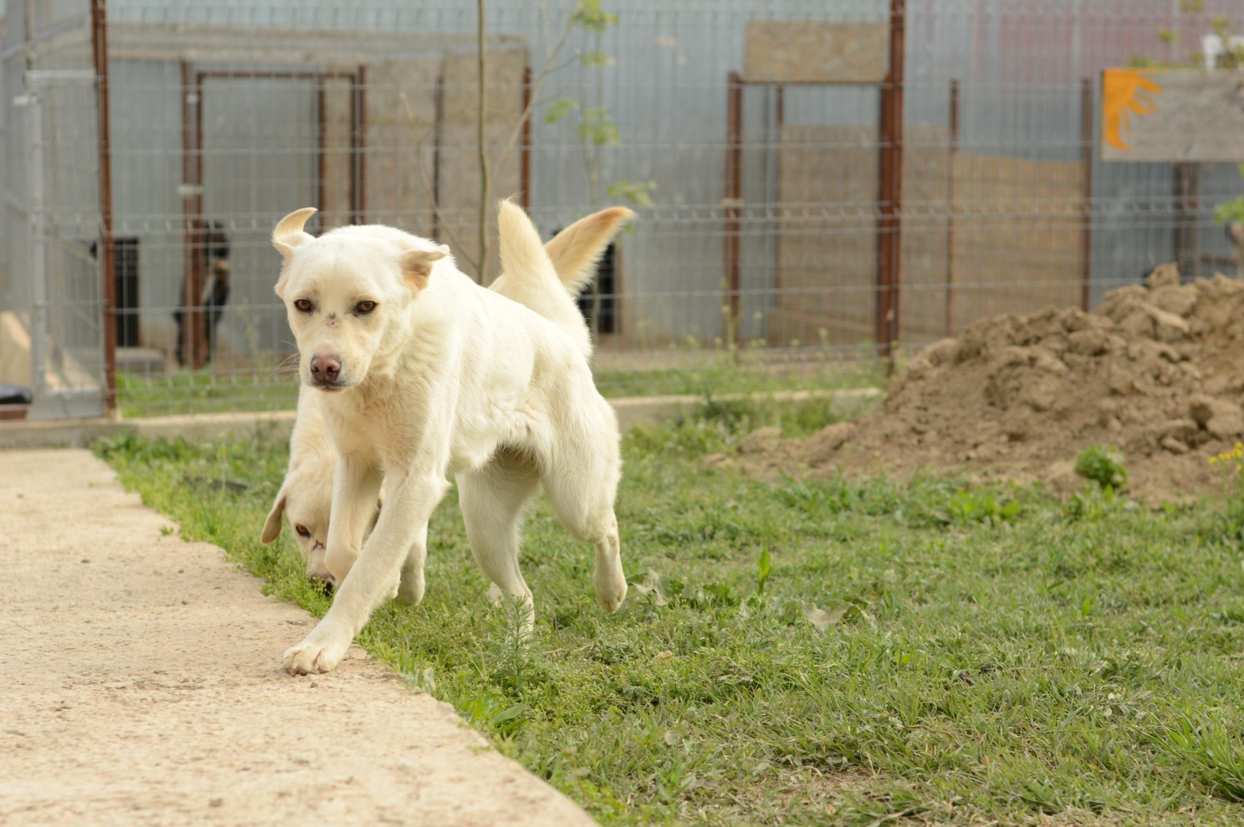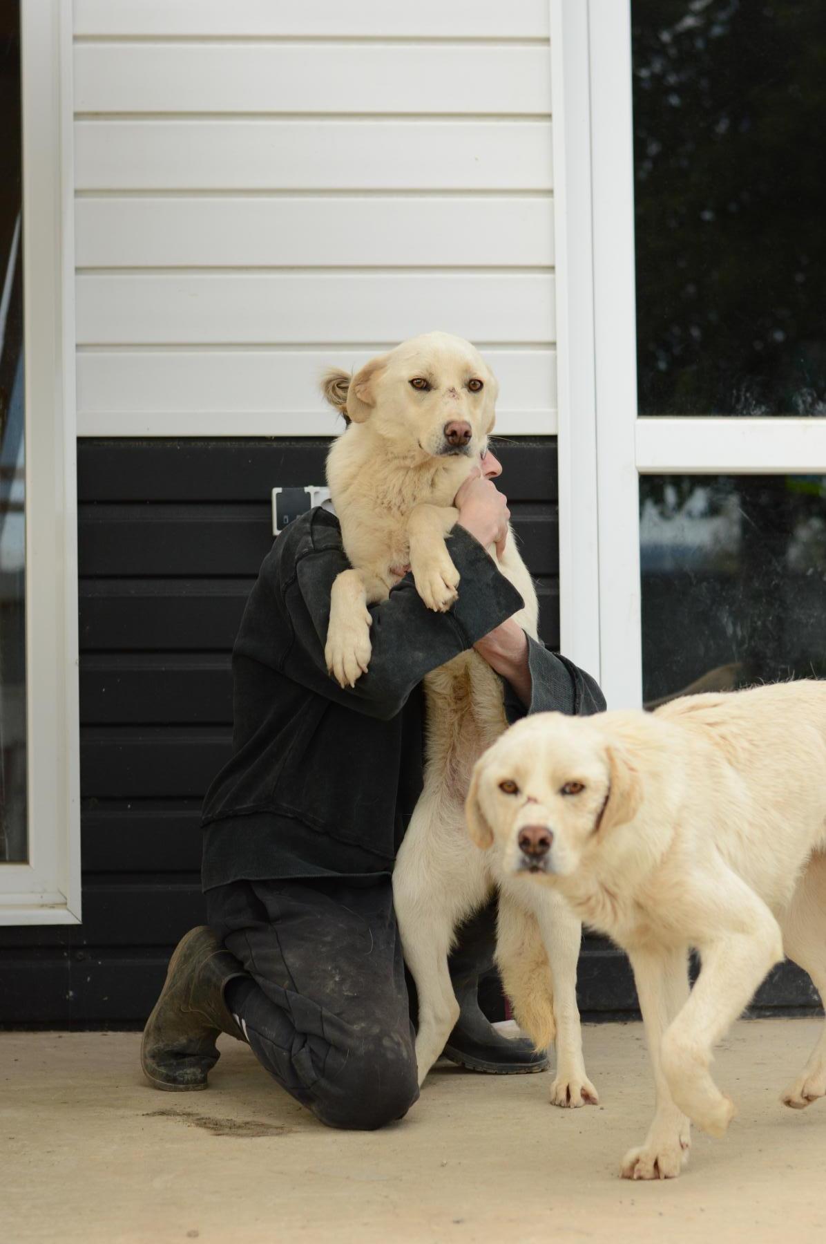 Georgie was de voorzichtigste. Het heeft wel even geduurd voordat ze ons vertrouwde maar inmiddels is dat helemaal over en komt ze dus dolgraag knuffelen en spelen. Georgie heeft een litteken op haar snuit. In Roemenië zijn er mensen die geloven dat wanneer ze een brandplek op de neus van de hond maken, deze niet vatbaar is voor ziekten. Waarschijnlijk is dit ook bij Georgie gebeurd voordat ze bij ons in de opvang kwam.