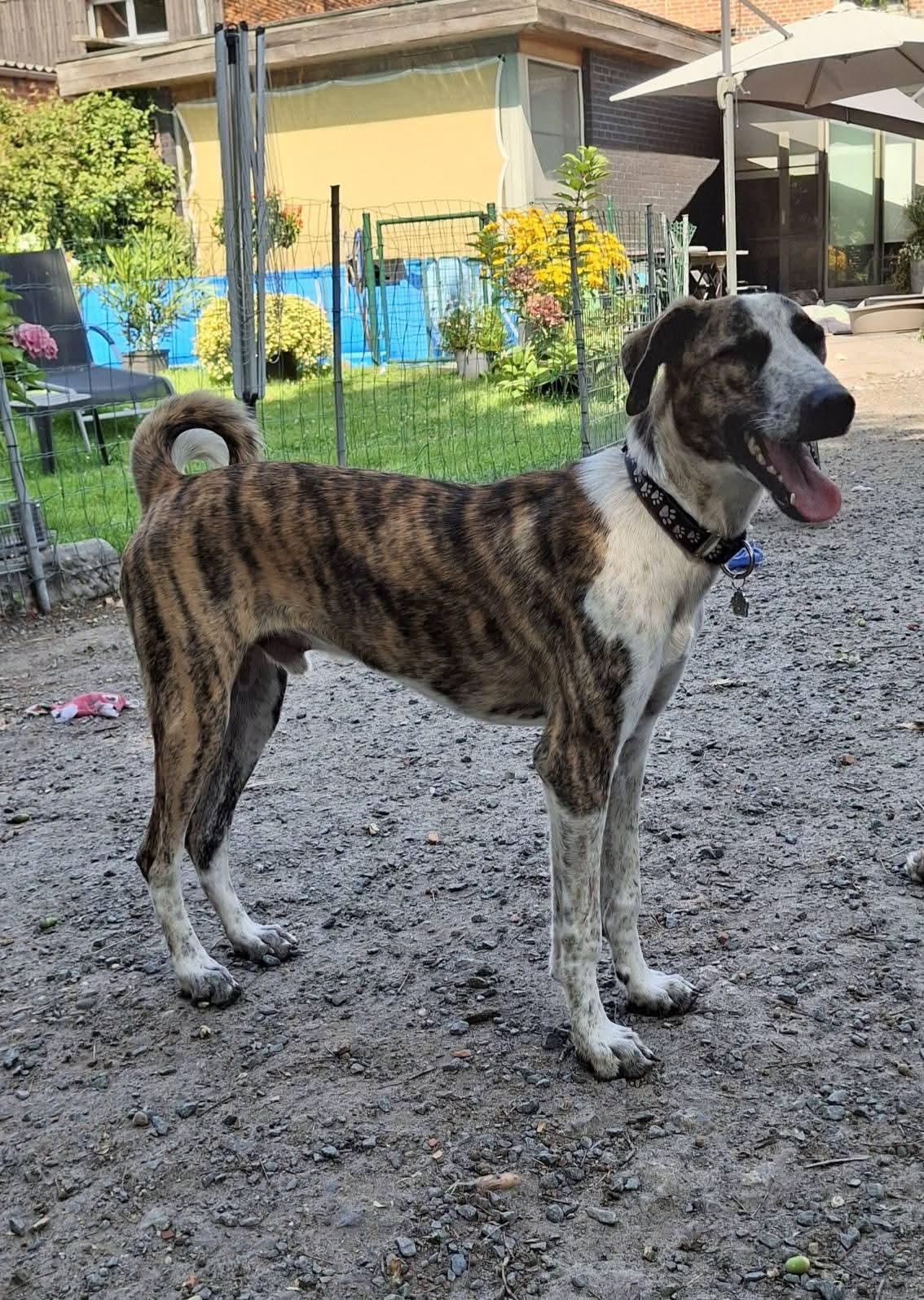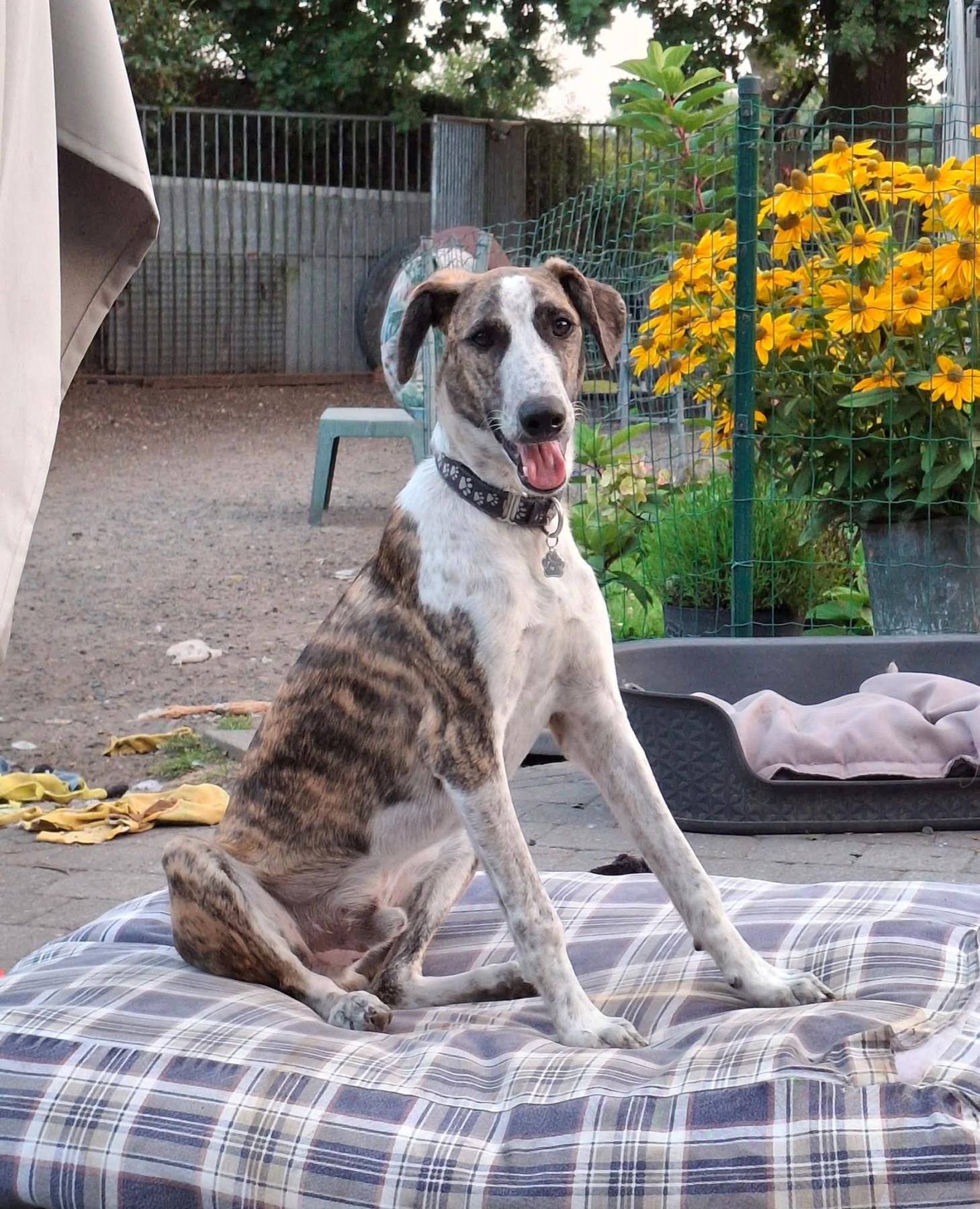 Maak kennis met Greg, een prachtige Whippet–Saluki mix van 9 maanden.