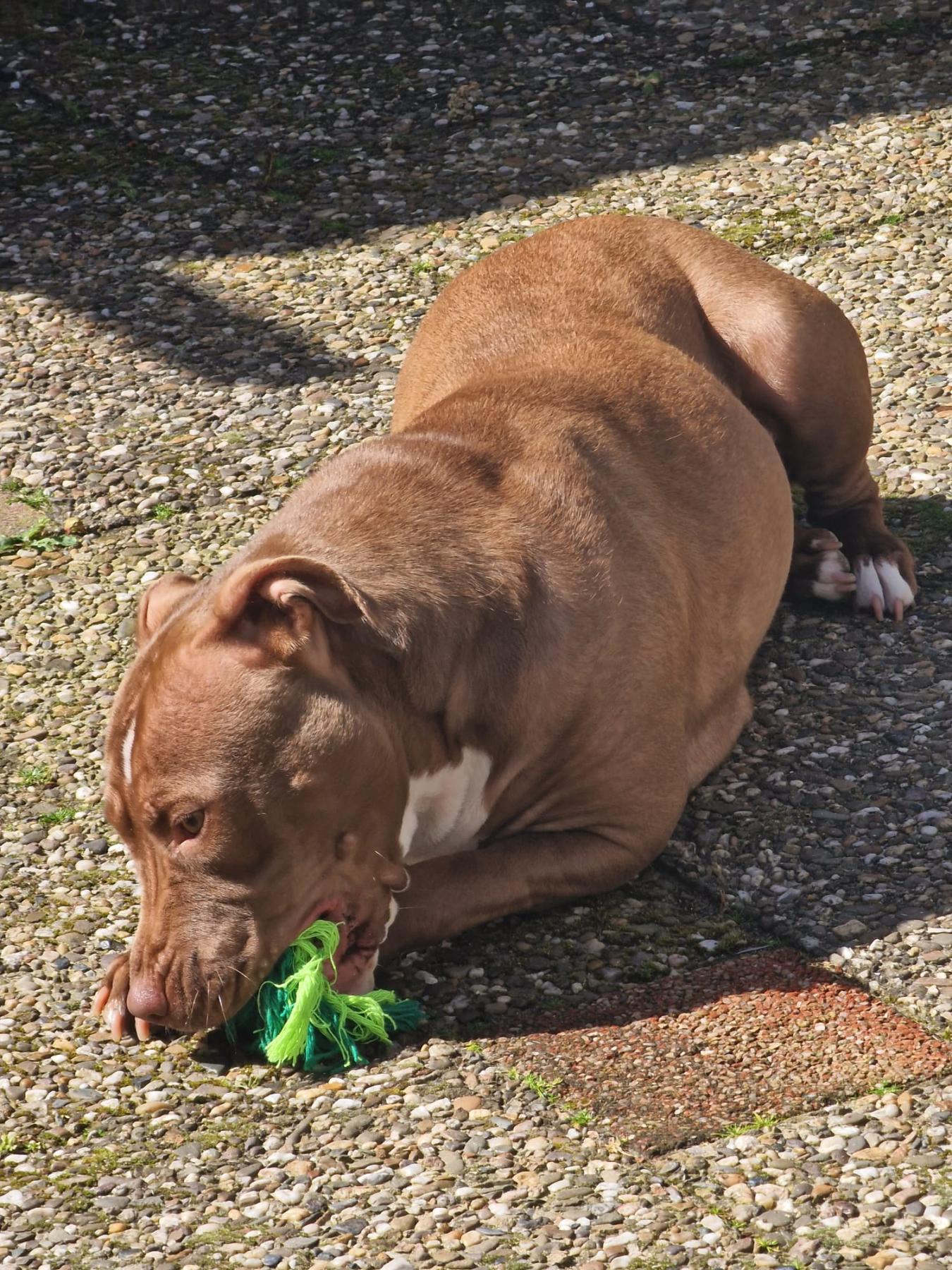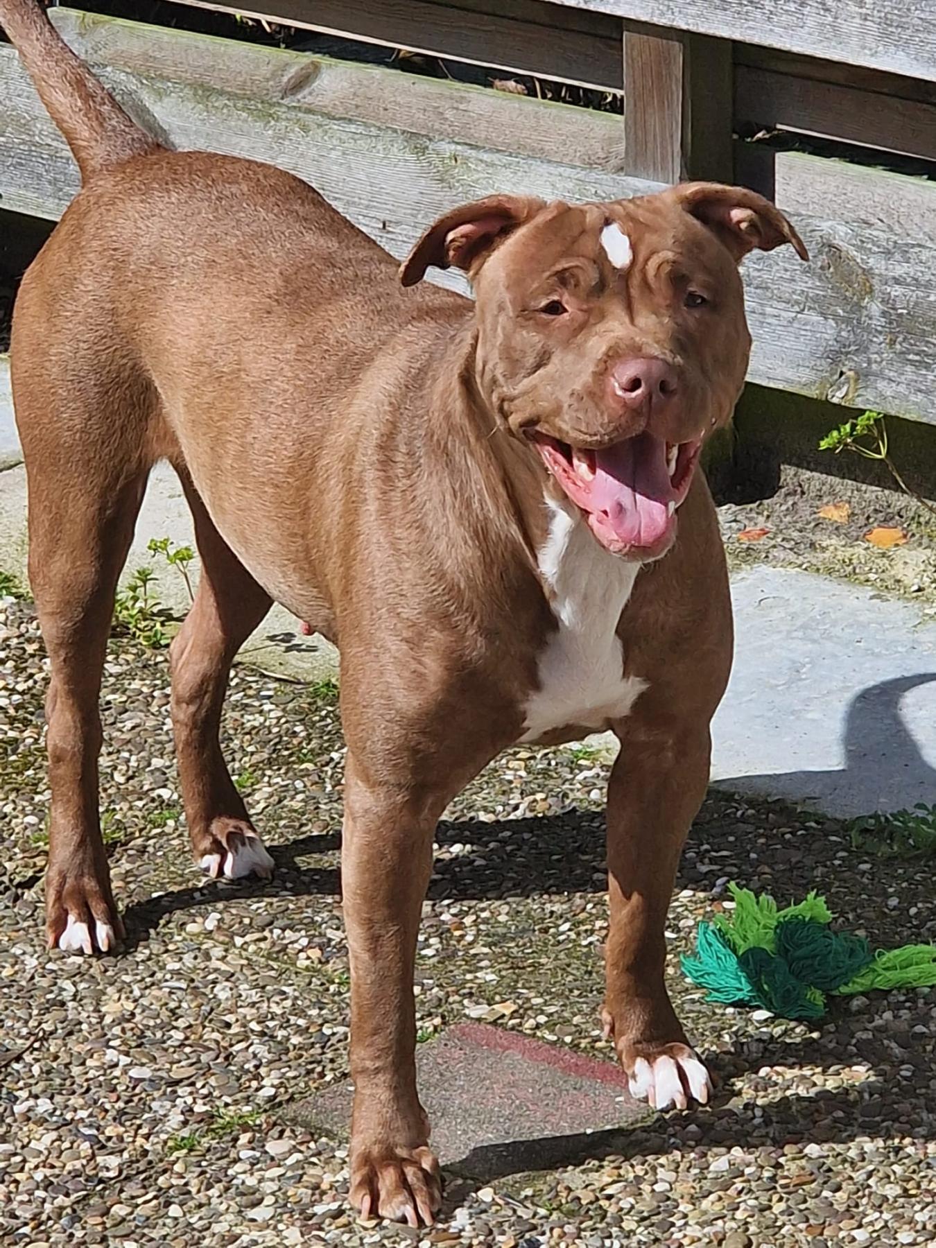 Met pijn in mijn hart ben ik op zoek naar een nieuw, liefdevol thuis voor mijn lieve pitbull van 4 jaar oud. Wegens veranderde omstandigheden en werkzaamheden buiten mijn woonplaats kan ik niet altijd een oppas regelen. Daarom hoop ik via deze weg e