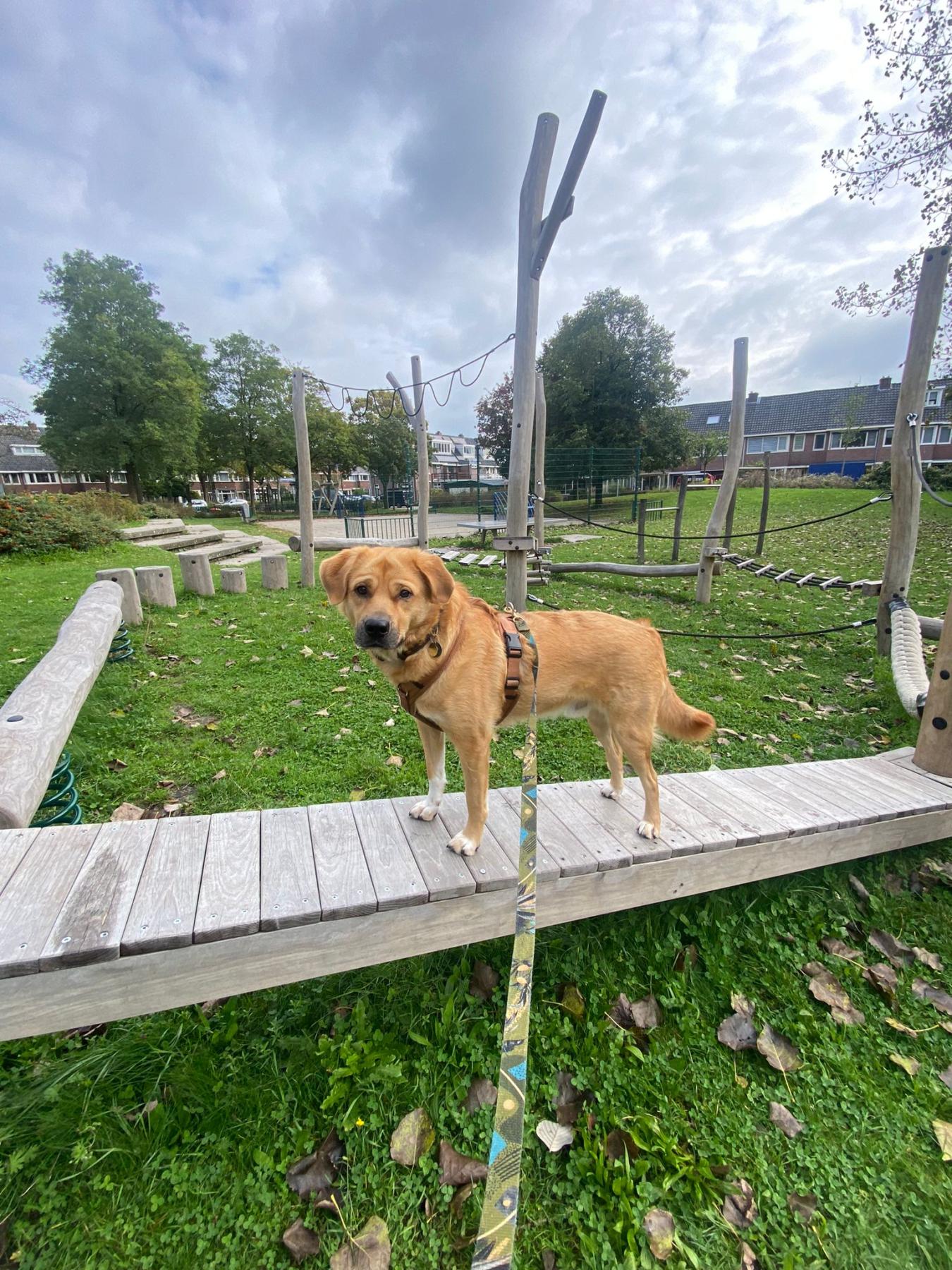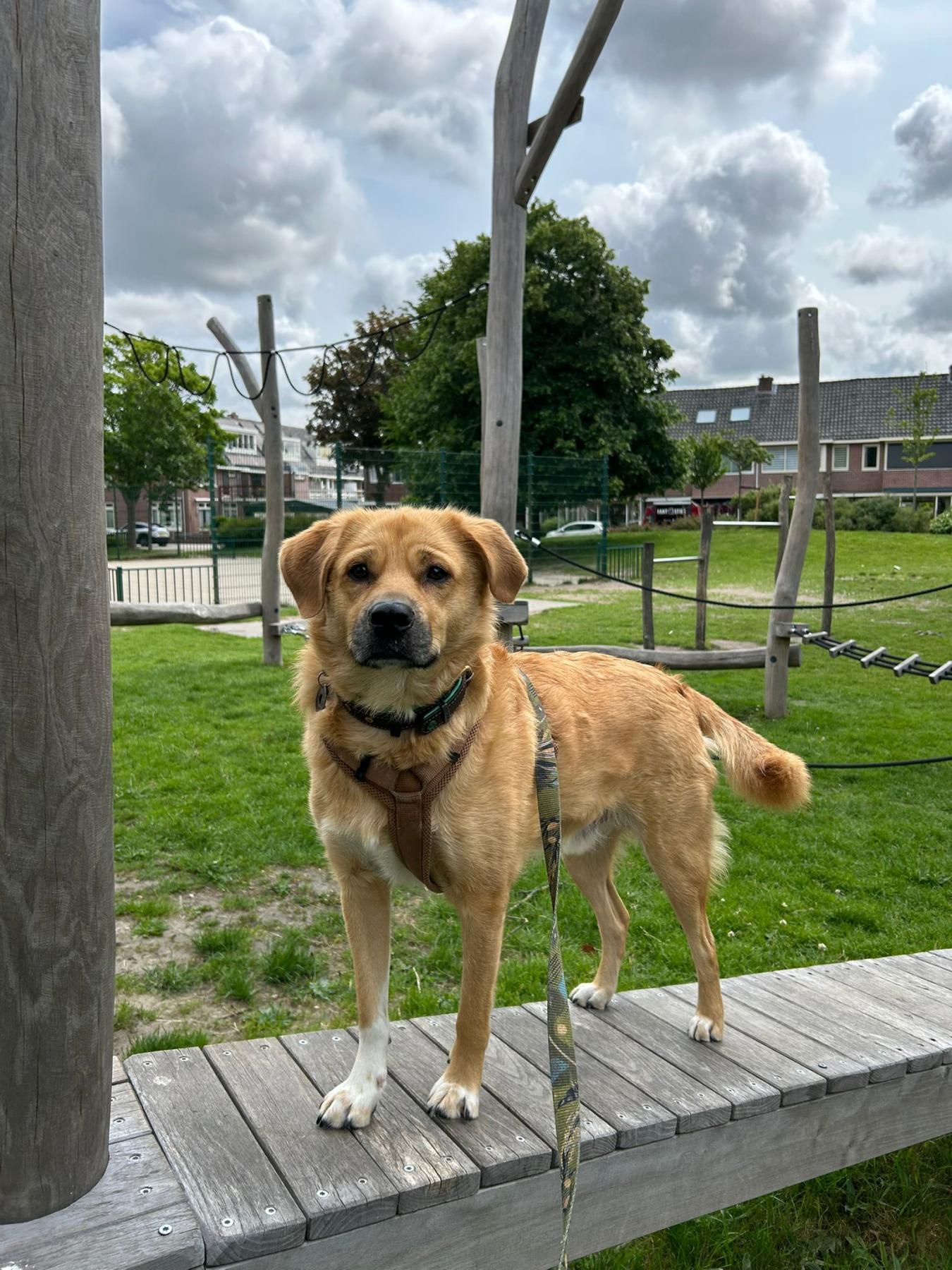 Aan de lijn heeft hij soms moeite om andere honden te ontmoeten, hij wil graag ruiken voordat hij doorloopt en gaat grommen wanneer dit niet mag. Ontmoetingen zonder aangelijnd te zijn, is een feest! Spelen, ravotten geeft Guus veel plezier. Hij is dan vooral onderdanig de eerste minuten en dat gaat over in samen spelen. Verder is hij gek van een bal en kauwen op grove touw speeltjes. Ik heb een uitlaatservice (Kayleigh). Hij gaat graag 2x per week met haar op pad. Ook dat zijn kleine opdrachten voor hem een feestje. Lopen over een houtenbalk (in speeltuintje), van rots naar rots springen, op de rots gaan zitten en dan beloond worden.