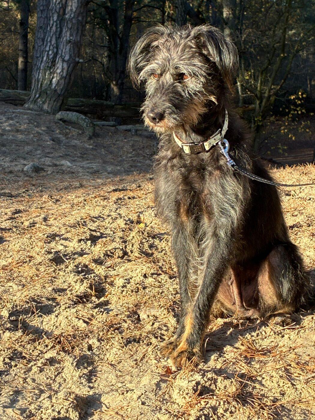 De eerste tijd was wandelen nog lastig voor Hazel. Ze begreep niet goed waarom of waarheen, en bleef soms stokstijf staan, alsof ze het nut niet zag. Maar zodra er een beloning kwam, begon haar staart voorzichtig te kwispelen. Met geduld en duidelijke begeleiding leerde ze stapje voor stapje dat wandelen ook fijn kan zijn — dat de lijn niet eng is, maar juist een teken van vertrouwen. En elke dag zie je haar een beetje meer ontspannen.