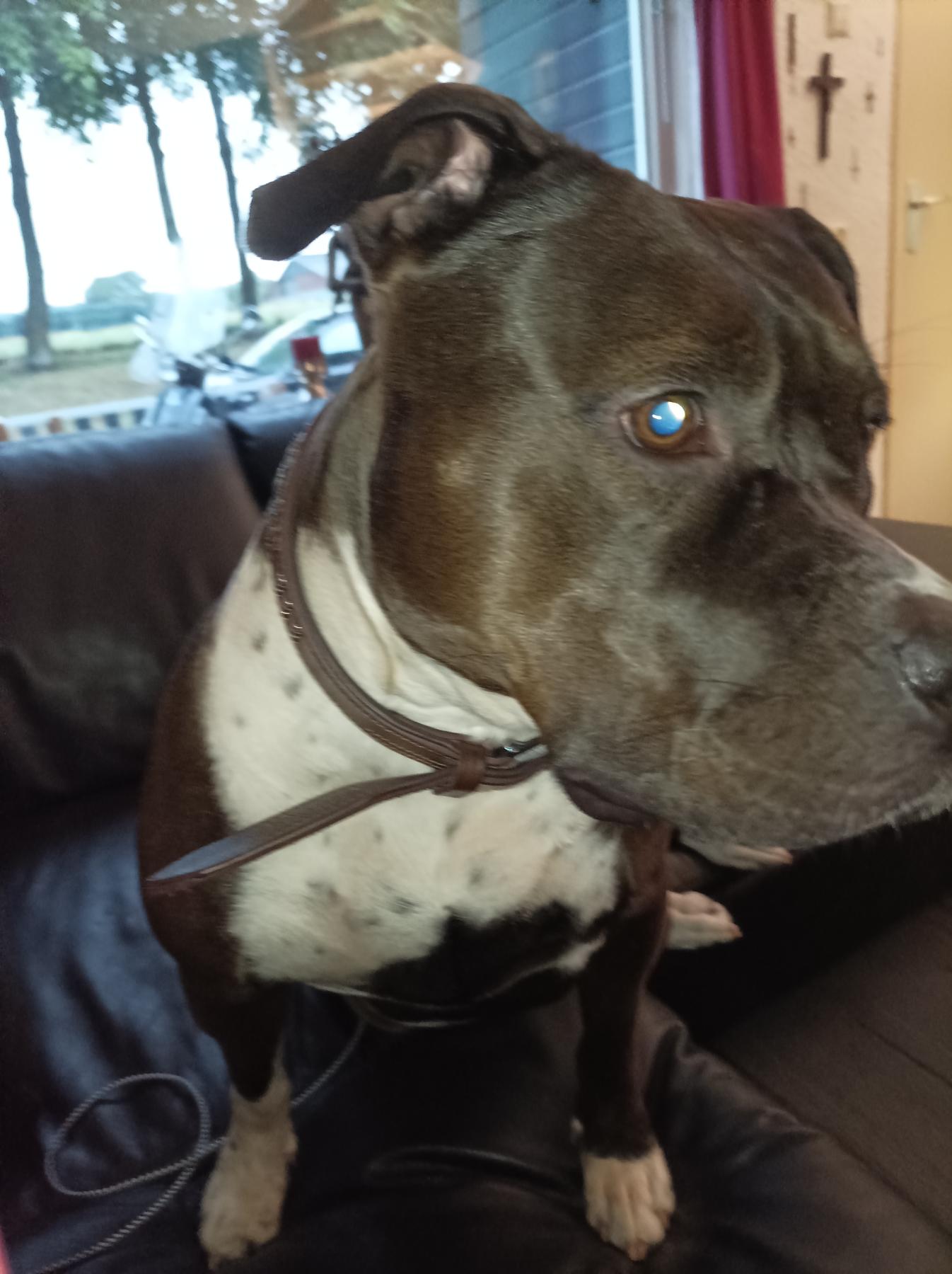 Ze wordt in maart 2 jaar en is een prachtige Amerikaanse Bully XL met een enorm lief karakter.