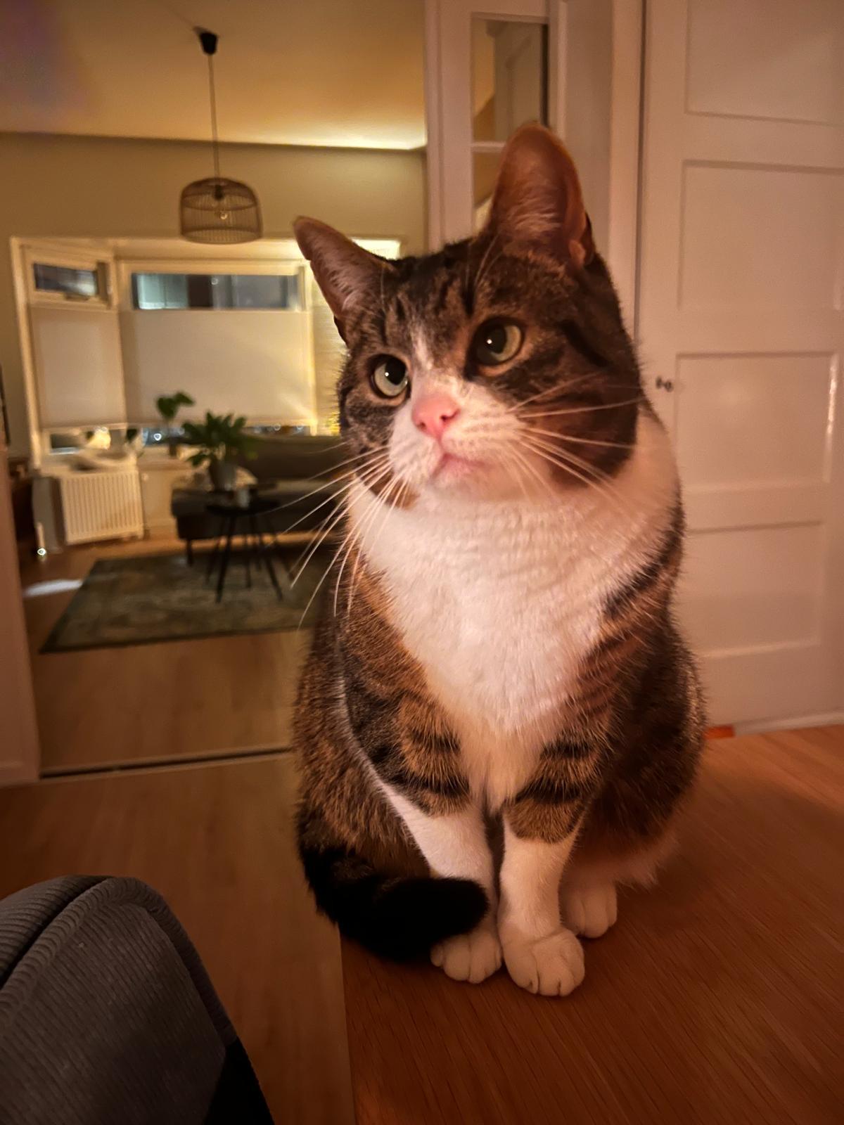 Jip is een kat die graag in je omgeving is, ligt heel graag op schoot. Als kitten is Jip bij ons komen wonen, waarna bleek dat hij jonger was dan dat hij het nestje mocht verlaten. Hier heeft hij sociaal gezien wel een tik van gehad. Hij kan soms wat onberekenbaar reageren als iemand hem plotseling aait. Als het voorspelbaar is, vindt hij het echter heel fijn