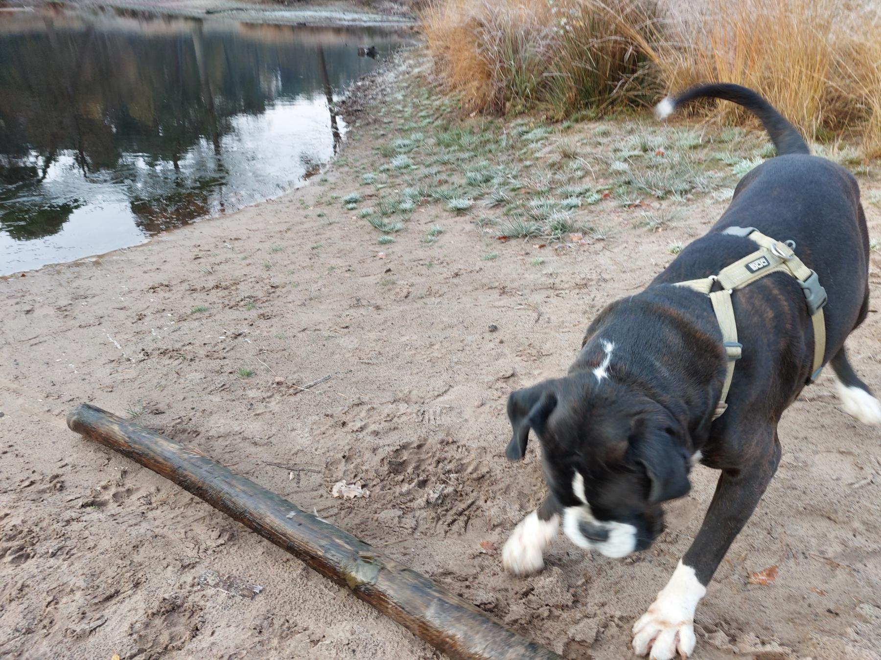 In de tuin vindt hij het heerlijk om op zijn rug in het gras te rollen, vooral als de zon schijnt of wat te spelen.