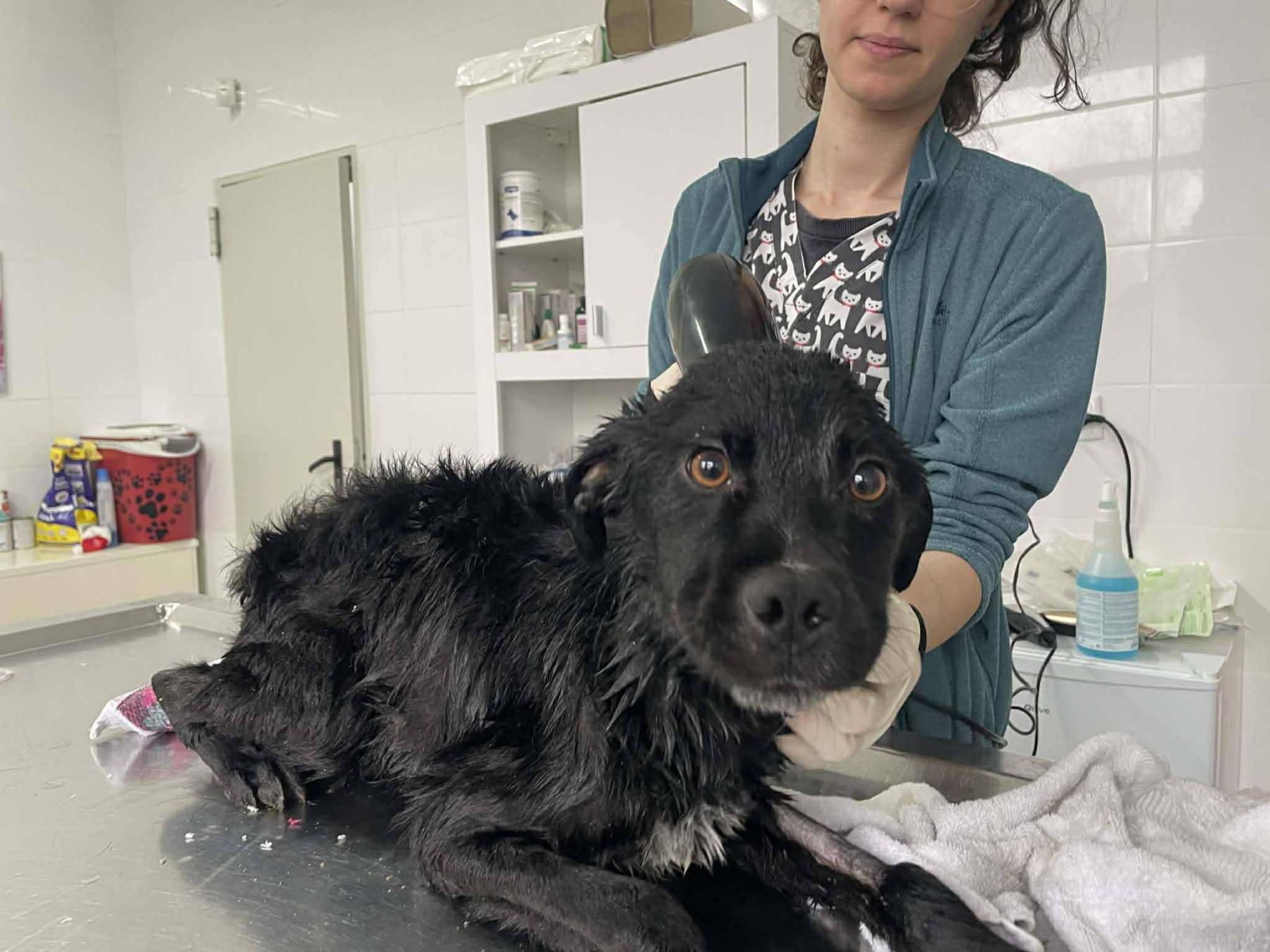 Hij lag aan het infuus, werd warm gehouden en zit apart zodat hij eindelijk rust kan vinden. Ondanks alles laat hij zich heel lief verzorgen en toont hij hoe ongelooflijk zacht en vriendelijk hij is