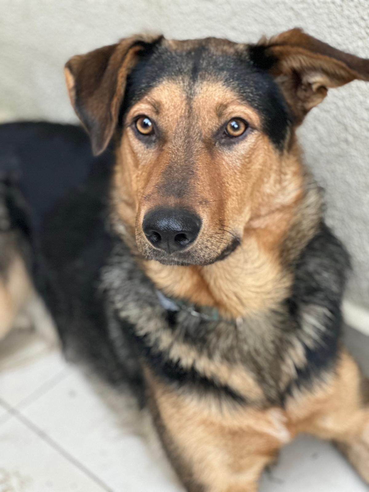 Maak kennis met Jolly – zachtaardige hond met zijn lieve ogen en af en toe opstaande oren.