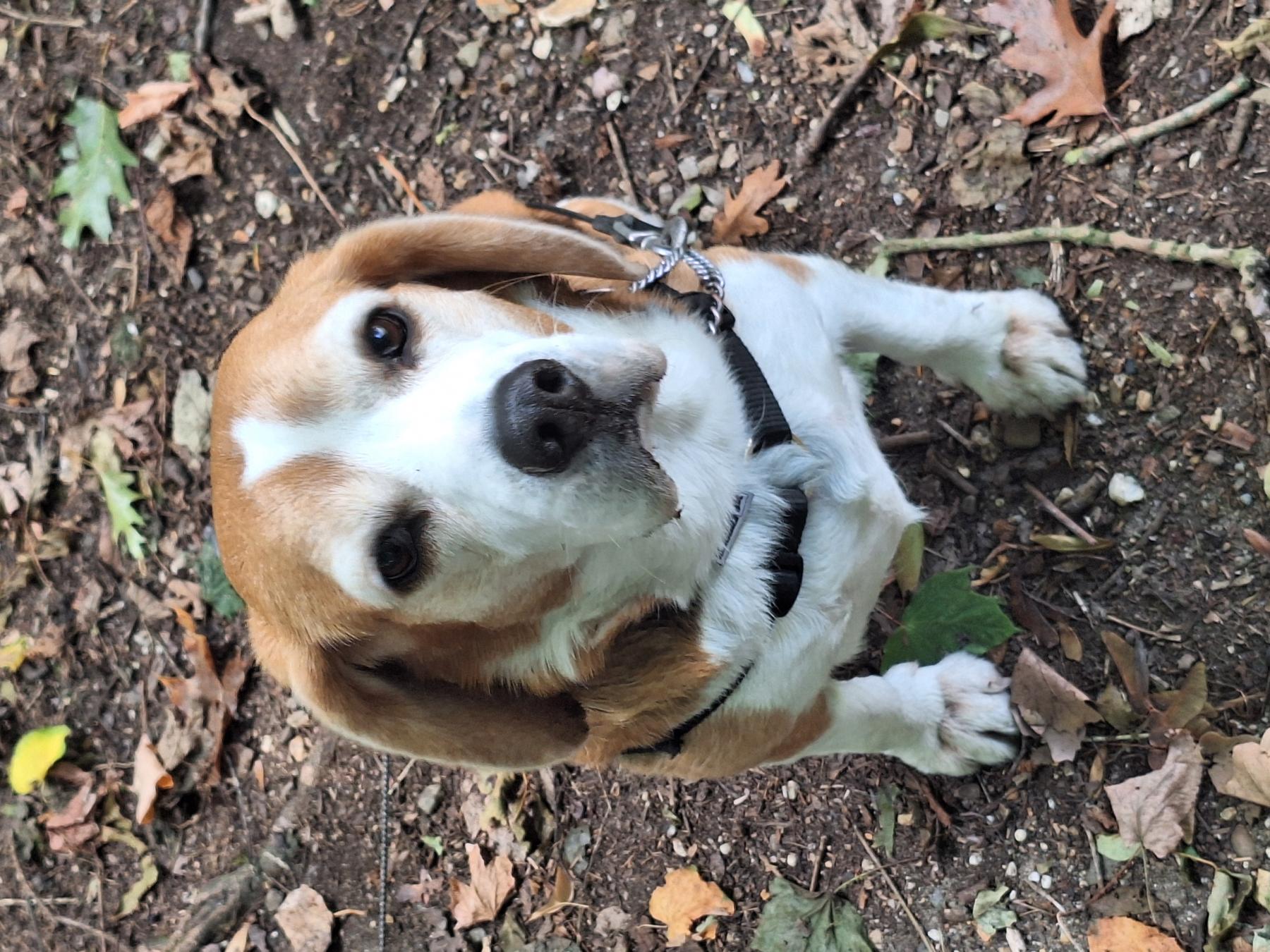 Joy is een lieve beagle met eigenwijze trekken. Ze kan dingen die ze pakt niet loslaten, wat wij erg lastig vinden ivm spelen/speelgoed kind.