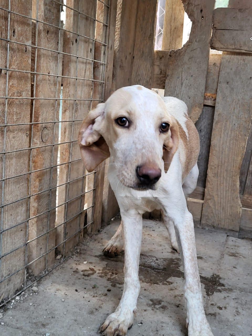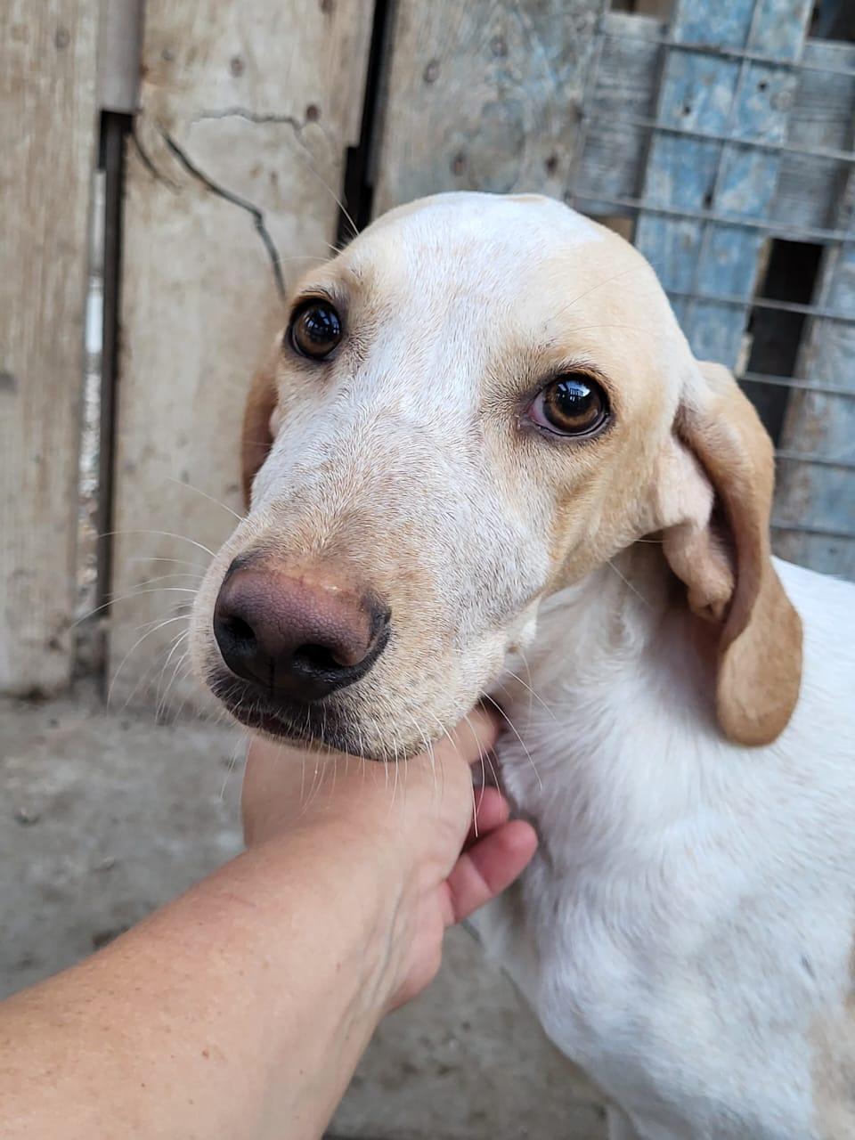 Dit is Bertie, een indrukwekkend mooie beige-oranje pointermix pup van zo’n 4 à 5 maanden oud. Zijn zachte blik verraadt zijn gevoelige karakter, Bertie is een rustige, zachtaardige jongen die wat tijd nodig heeft om de wereld om zich heen te vertrouwen.