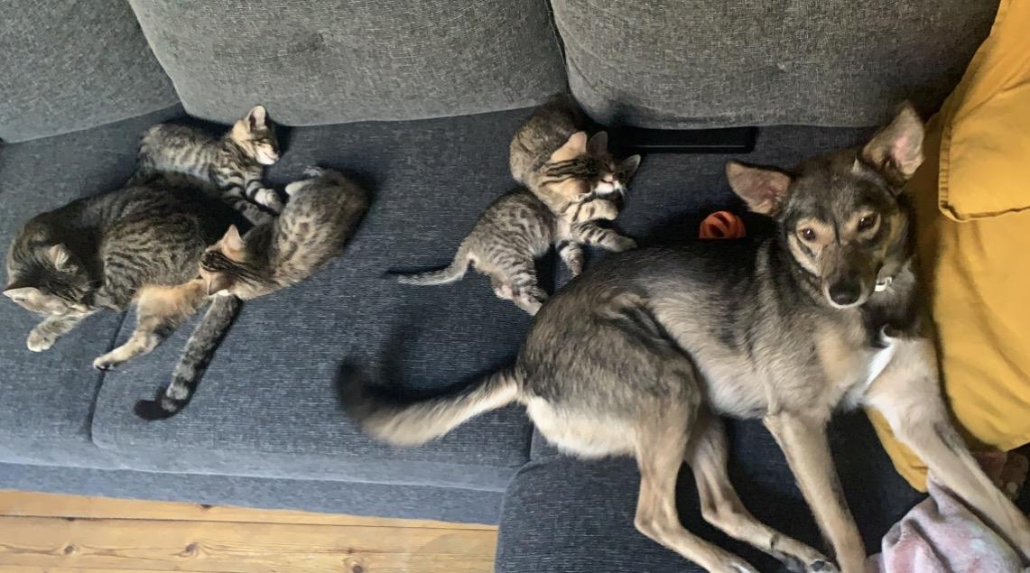 Met katten kan ze goed. Honden die ze kent ook, maar liever geen andere honden.