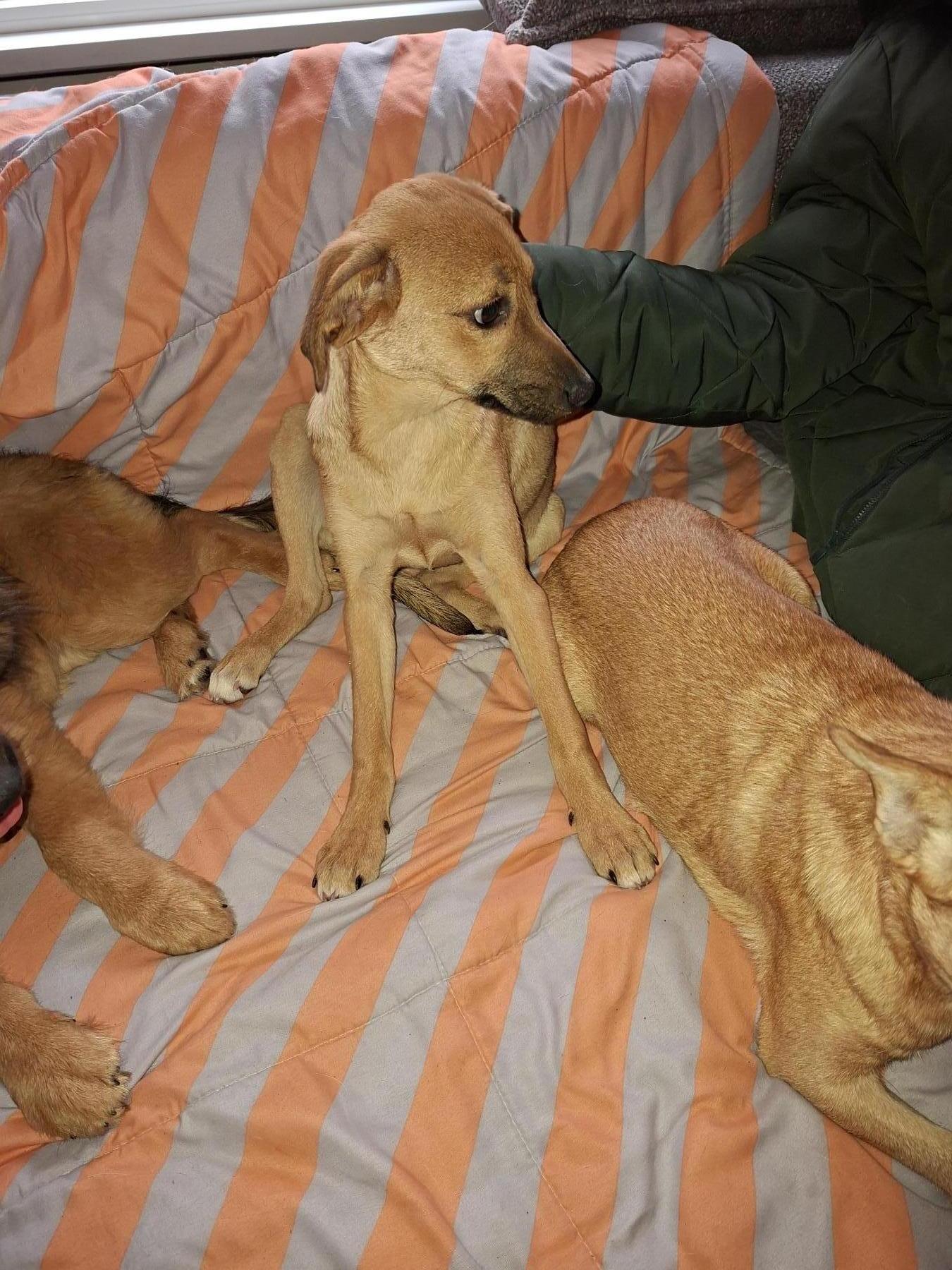 Op één foto staat ze, helemaal links, tussen andere pups, daar is goed te zien hoe slank ze is. Een paar van de andere pups wonen ook in nederland en zijn voor adoptie.