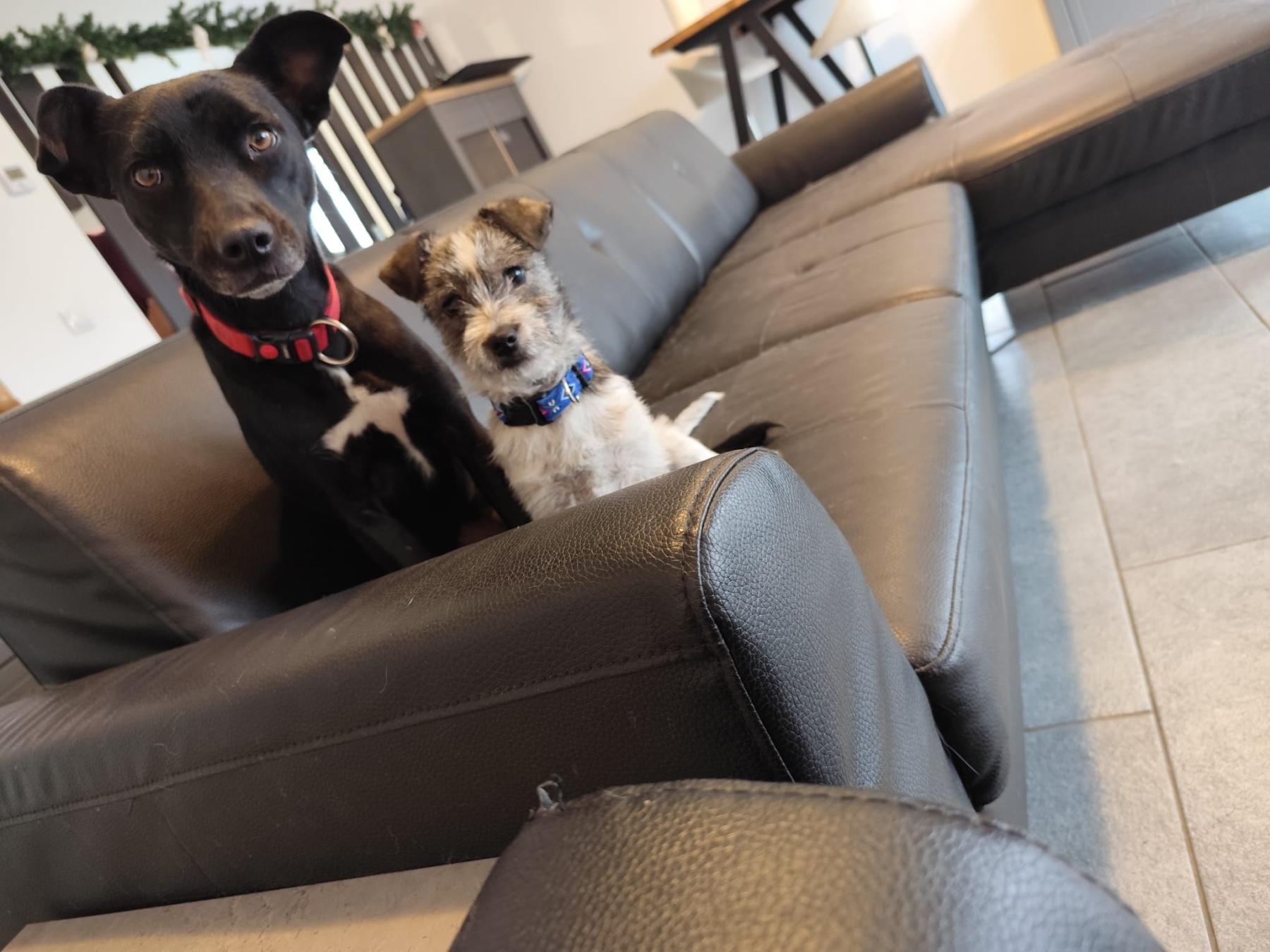 Enige wat we haar nog moeten afleren is dat barkrukken en tafels geen dingen zijn waar je op springt en aanleren om met de riem te lopen. Echter zo pienter als zij is zal dat snel aan- en afgeleerd zijn.