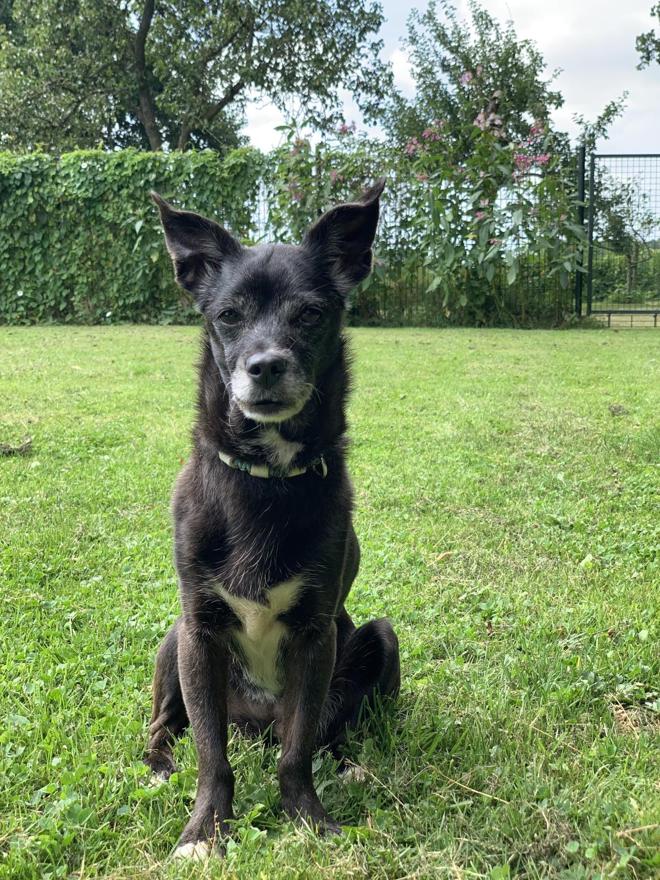 Lyske is een senior van 12 jaar oud, maar ze is kwiek en wandelt nog graag en loopt op rustige plekken los mee. Naar mensen, ook kinderen, sociaal en gezellig. Met 33cm en 5,5 kilo past ze prima op schoot. Voor meer informatie over Lyske en onze andere honden ter adoptie kijk hier