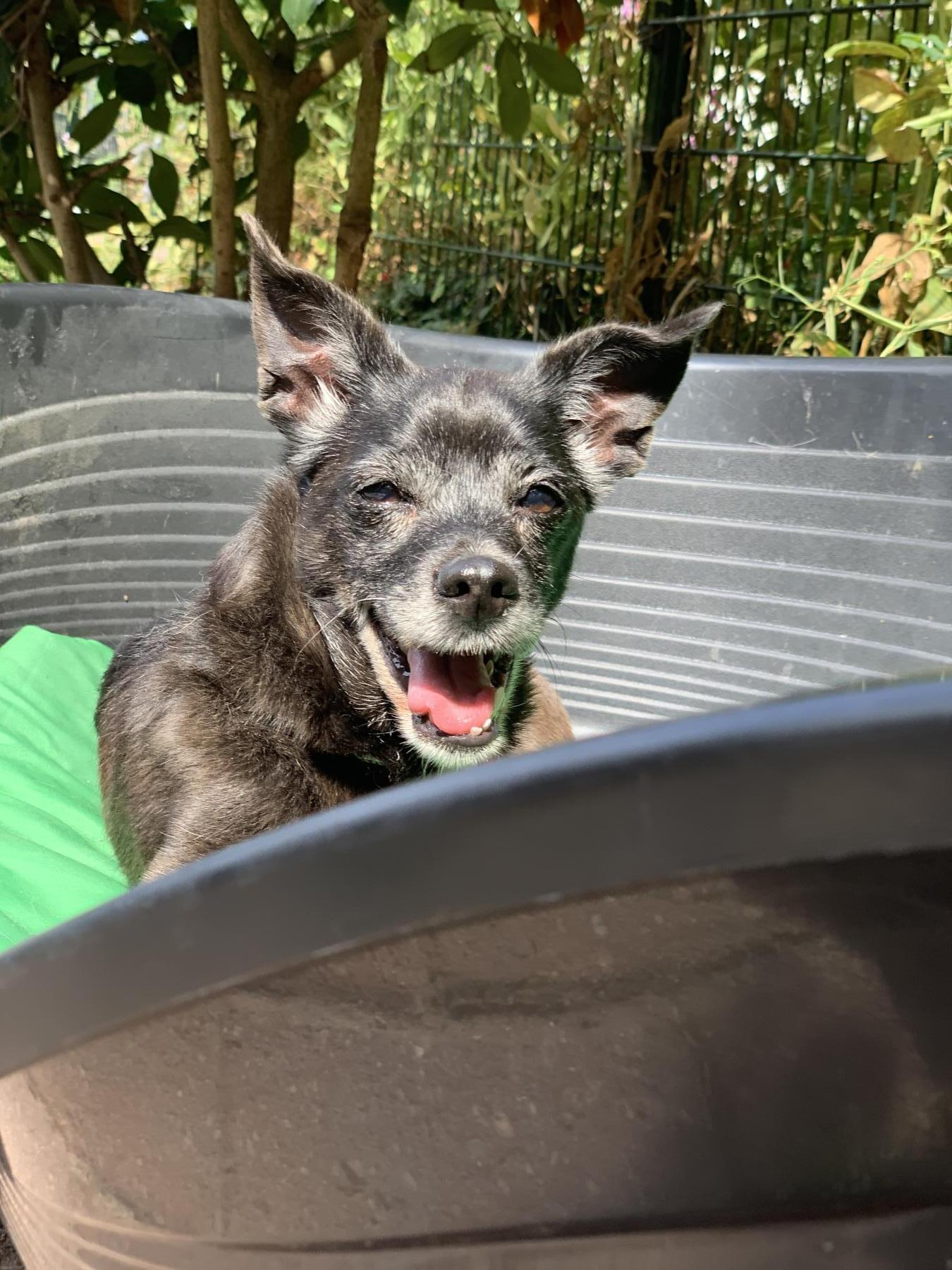 Lyske is een senior van 12 jaar oud, maar ze is kwiek en wandelt nog graag en loopt op rustige plekken los mee. Naar mensen, ook kinderen, sociaal en gezellig. Met 33cm en 5,5 kilo past ze prima op schoot. Voor meer informatie over Lyske en onze andere honden ter adoptie kijk hier