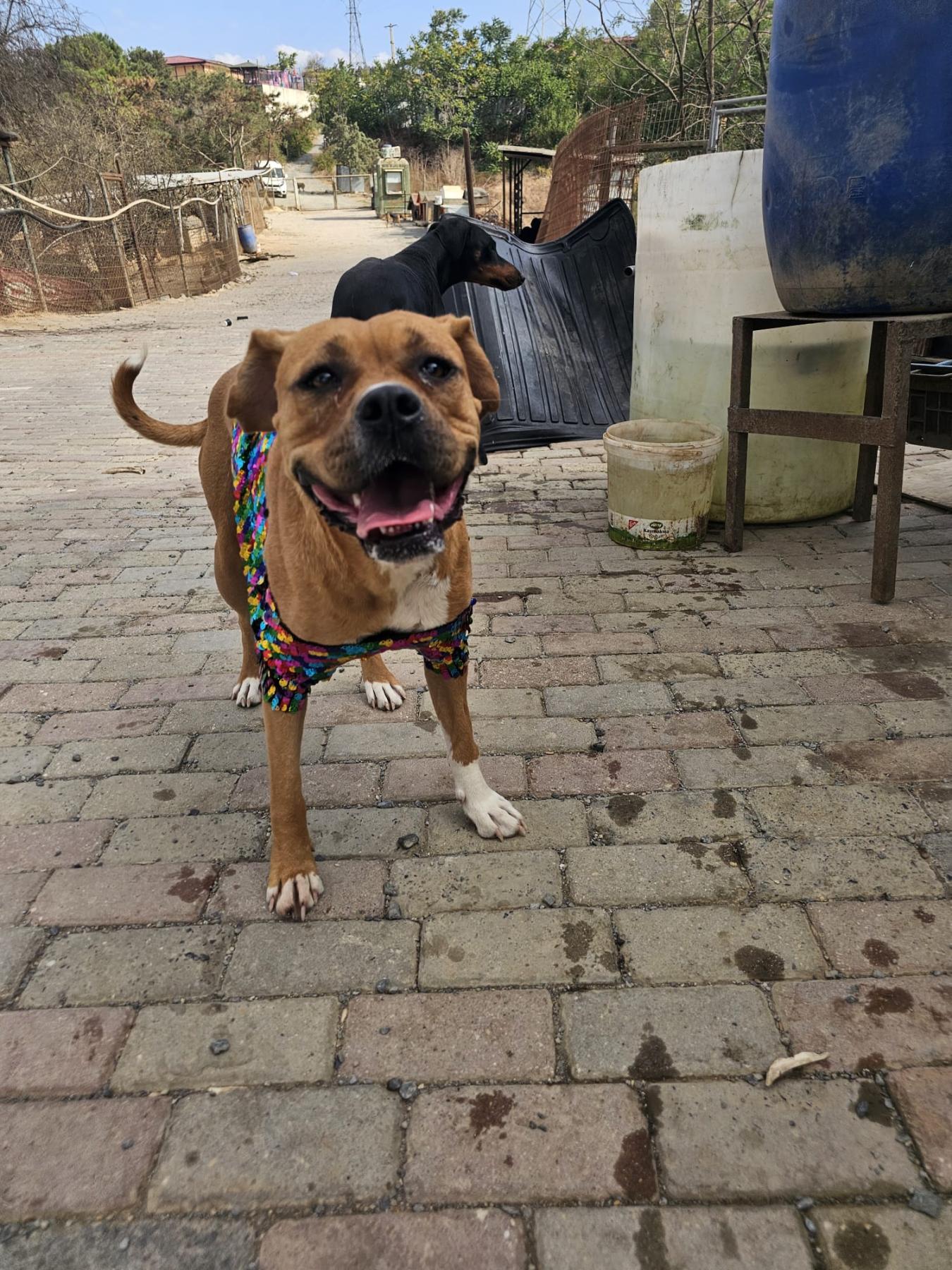 Mari werd schuilend op een bouwplaats in Istanbul gevonden. Haar voorpootje was gebroken. Ze is naar de kliniek gebracht en daarna is ze in bescherming genomen in het bosasiel.