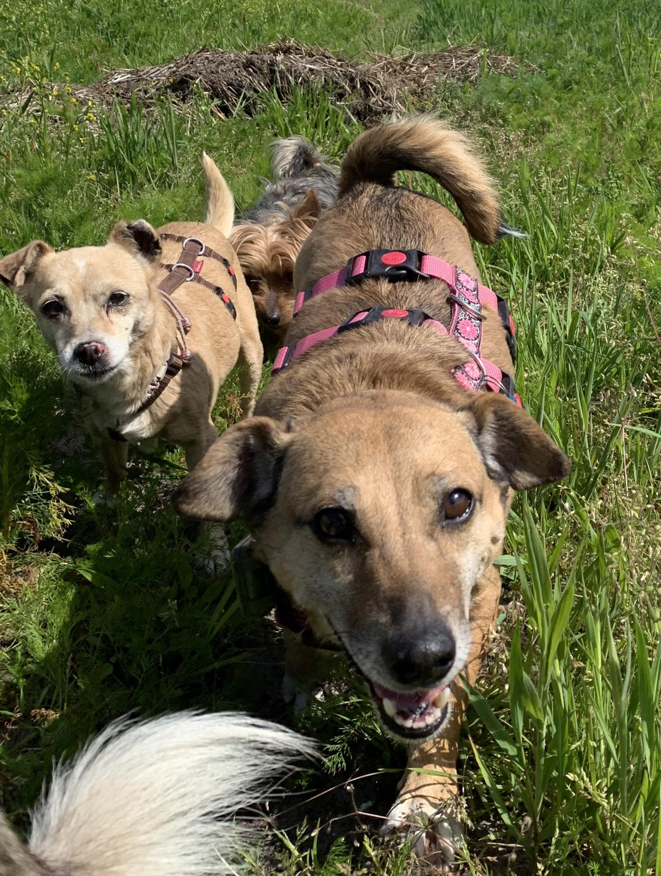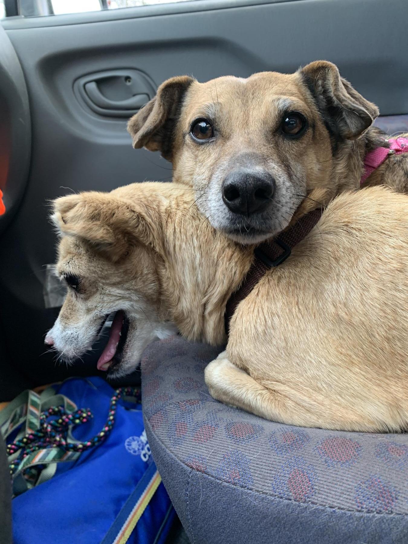 Na 1,5 jaar asiel kwamen ze vlak voor kerst naar de opvang in Drenthe. En wat doen ze het goed! Mama Marion is het fragiele kleintje van 4 kg en is 11 jaar oud. Dochter Marian is met 35cm/10kg wat groter maar nog wel een kleine formaat en zo’n 6 jaar oud geschat. Ze komen blij aangerend om je te begroeten. Ze zijn aanhankelijk en Marian begint al een beetje te spelen. Ze darren aan de lijn nog wat onwennig alle kanten op maar zijn niet bang van rustig rijdend verkeer en ontlasten zich ook aan de lijn. In het buitengebied lopen ze al op rustige plekken los mee met de roedel. Marion en Marian zijn onafscheidelijk, kunnen bij andere honden maar worden niet apart van elkaar bemiddeld. Ook verliezen ze hun opvangvrouwtje niet uit het oog en zouden ze graag een huisje vinden waar ze weinig alleen hoeven te zijn.