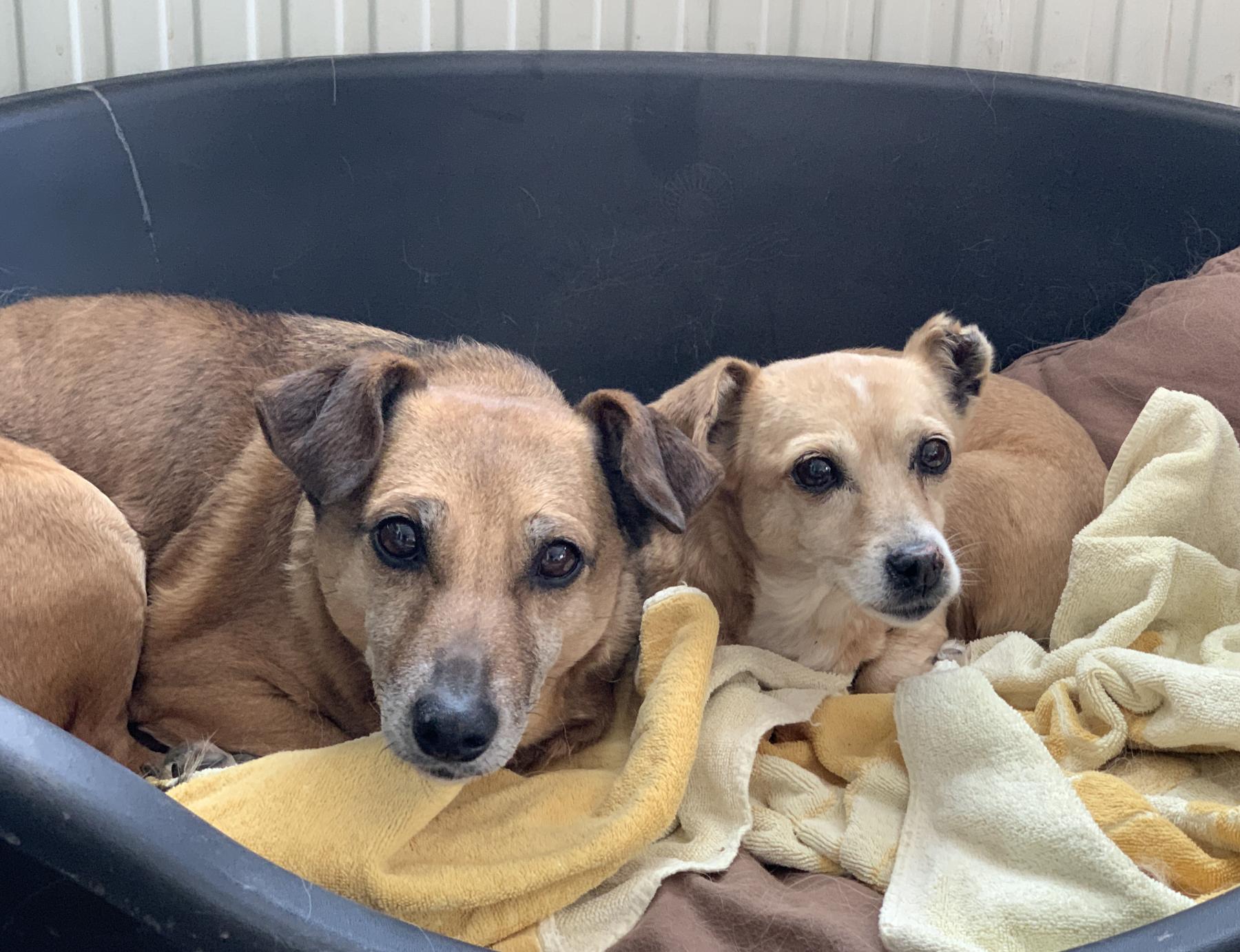Na 1,5 jaar asiel kwamen ze een jaar geleden naar de opvang in Drenthe. Mama Marion is het fragiele kleintje van 5 kg en is 12 jaar oud. Dochter Marian is met 35cm/10kg wat groter maar nog wel een kleine formaat en 7 jaar oud geschat. Ze komen blij aangerend om je te begroeten. Ze zijn aanhankelijk en Marian speelt soms met een balletje. Hoewel niet bang van verkeer is het lastig om ze tegelijk aan de weg uit te laten omdat Marian dan altijd wel zorgt dat ze zand in de ogen van de kleine Marion veegt die dan dagenlang last heeft. Handig is dus twee baasjes die elk een hondje vast kunnen houden of gewoon lekker wandelen in een natuurlijke omgeving waar ze los kunnen. Marion en Marian zijn onafscheidelijk, kunnen bij andere honden maar worden niet apart van elkaar bemiddeld. Ook verliezen ze hun opvangvrouwtje niet uit het oog en zouden ze graag een huisje vinden waar ze weinig alleen hoeven te zijn.