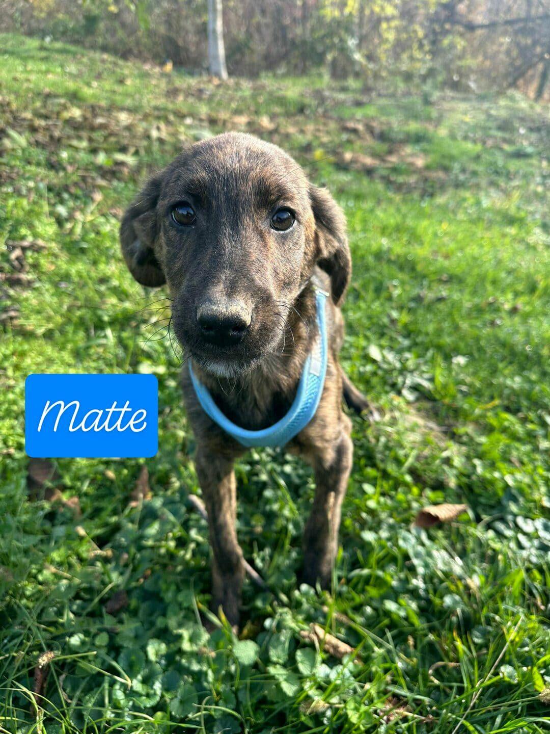 Matte is een lief en rustig jongetje uit Bosnië, geboren op 26 juni 2025. Hij is ongeveer 37 cm hoog en weegt rond de 7 kilo, een middelgrote pup met een zachte persoonlijkheid en een groot hart.