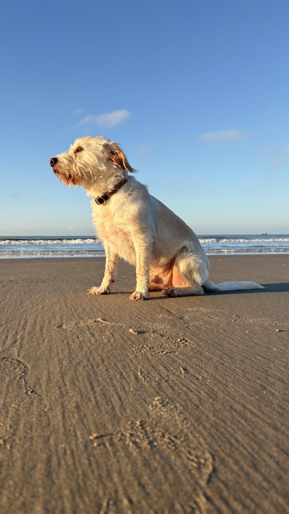Buiten laat hij een andere kant zien. Dan is hij alert, nieuwsgierig en zichtbaar blij. Wandelen is voor hem meer dan bewegen: hij geniet van de omgeving, van samen op pad zijn en van het ontdekken. Die afwisseling tussen rust binnen en activiteit buiten maakt hem zo’n fijne hond om mee te leven.
