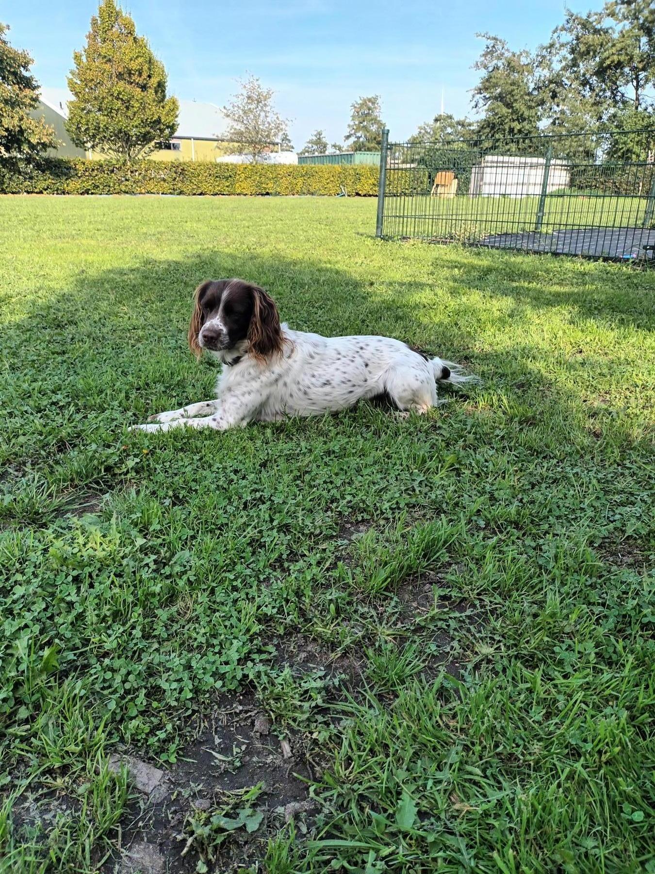 Het is een echte springer, heel bewegelijk. Houd van lekker rennen en schaduwen jagen. Ze is los in het open veld helemaal in haar element. Vind het heerlijk om geaaid te worden en houd van gezelschap.