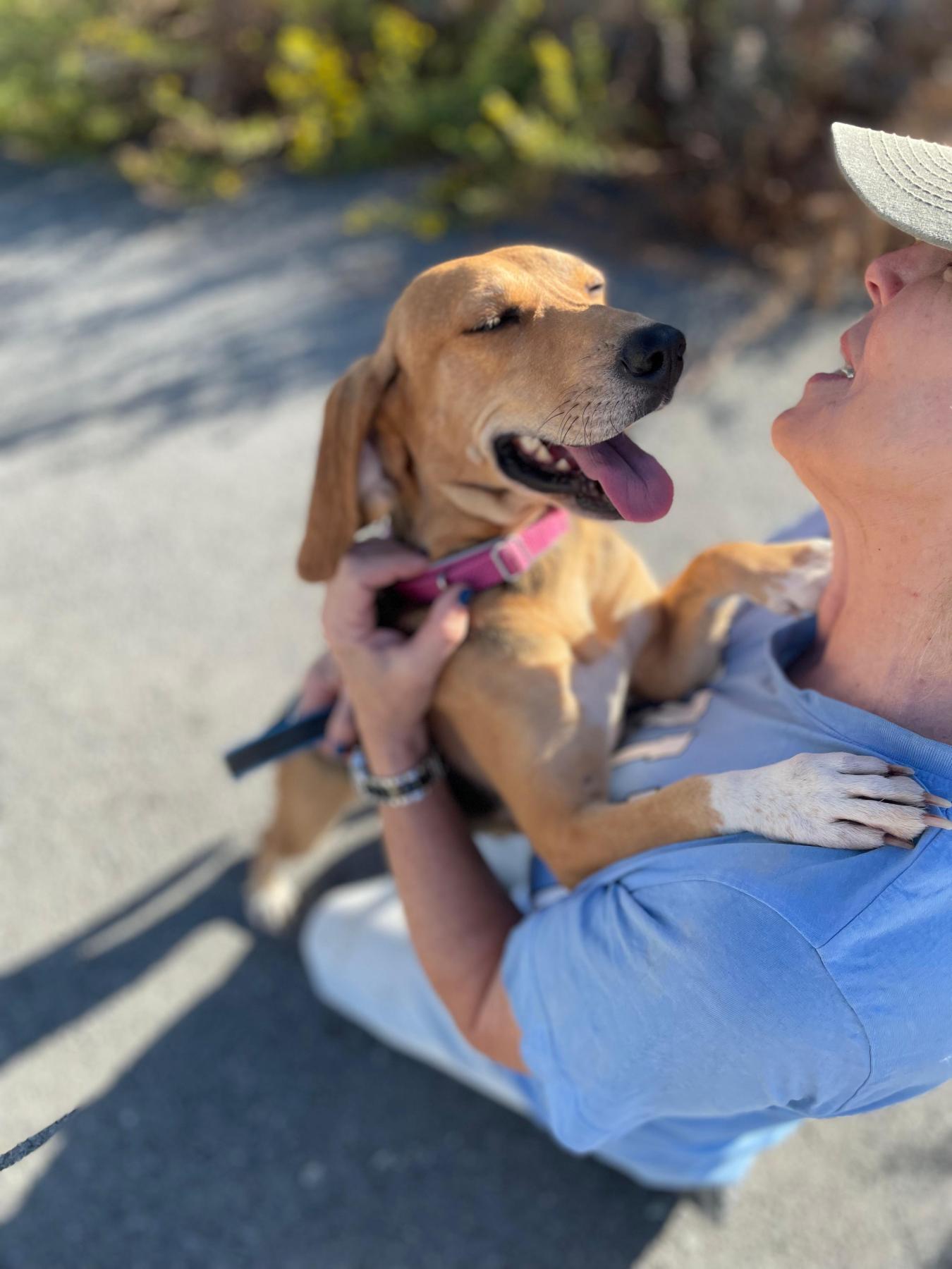 Wanneer een vrijwilliger haar ook maar voor een paar minuutjes mee naar buiten neemt, zie je haar hele gezicht oplichten. Haar staartje begint te zwaaien, haar oogjes glinsteren, en ze geniet van elk moment alsof het het mooiste is wat ze ooit heeft meegemaakt. Dát zou ze toch elke dag verdienen.