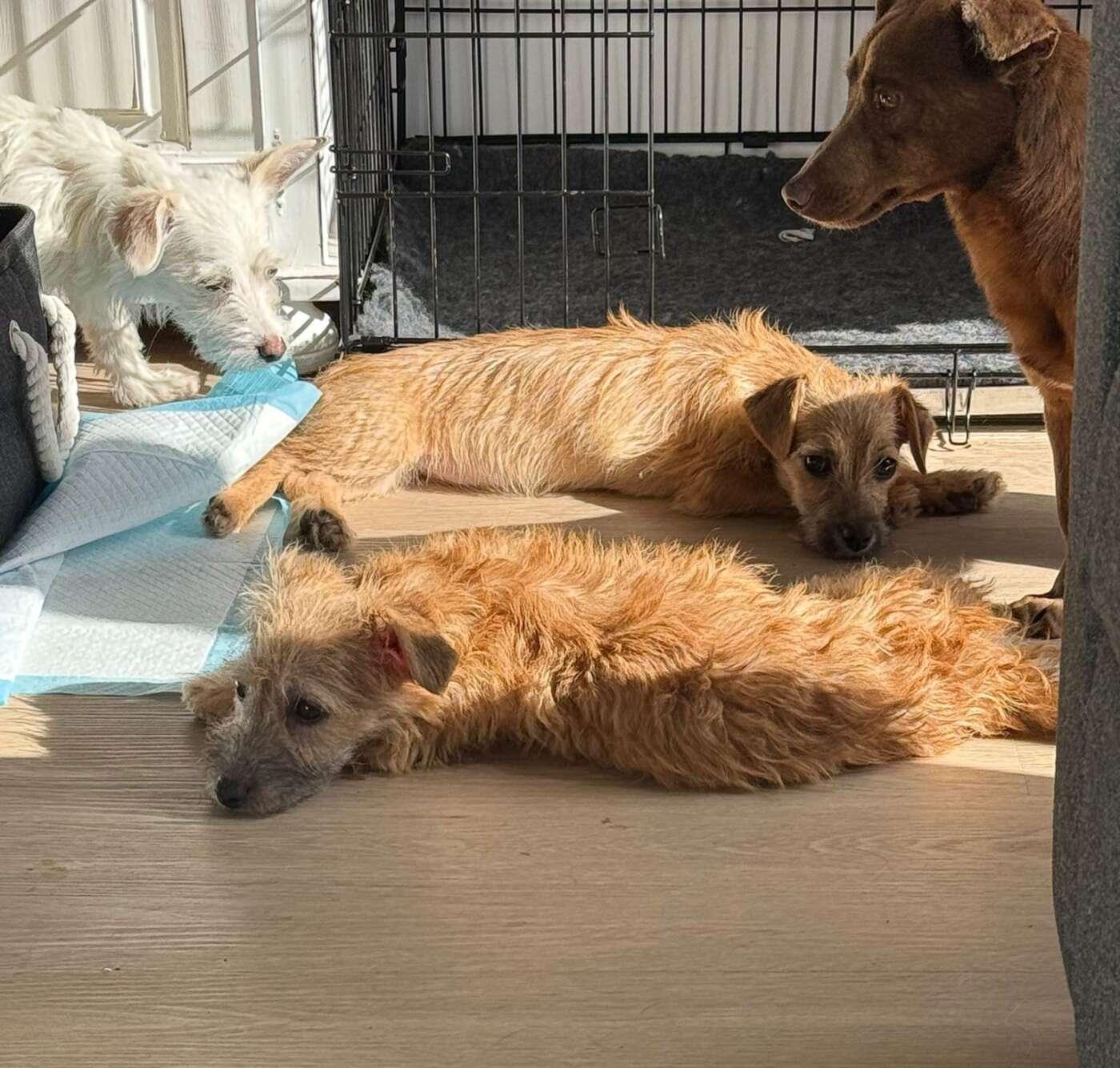 Mona is de minst stoere van het stel en heeft wat meer tijd nodig om te ontspannen maar zodra ze begrijpt dat ze veilig is en dat niemand haar meer pijn zal doen, zal ook dit meisje een begin maken om te ontdooien. Samen met haar zusjes en de andere hondjes ravot ze wat af om daarna lekker te gaan liggen dromen. Dat is een goed teken. Met slapen verwerken zij de indrukken die ze meemaken als ze wakker zijn.