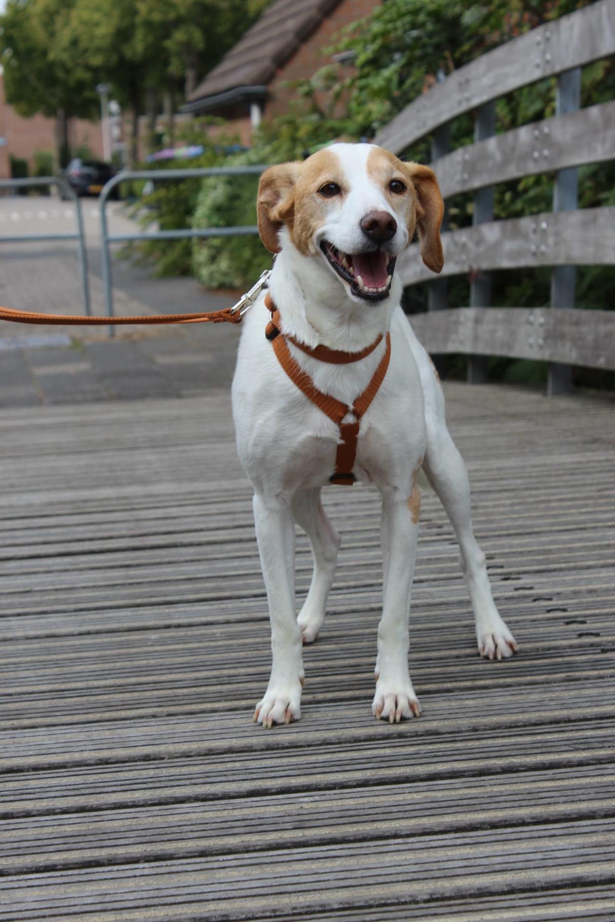Nicko is een lief en grappig hondje. Hij heeft een mooie glimlach. Hij zit sinds kort in een gastgezin in Spijkenisse en doet het daar harstikke goed. Nicko bekijkt de wereld graag vanuit de hoogte en zit graag ergens op. In de tuin is dat iets om rekening mee te houden. Zodat hij niet via een opstapje op de tuinmuur te zitten er dan overheen te gaan om op stap te gaa