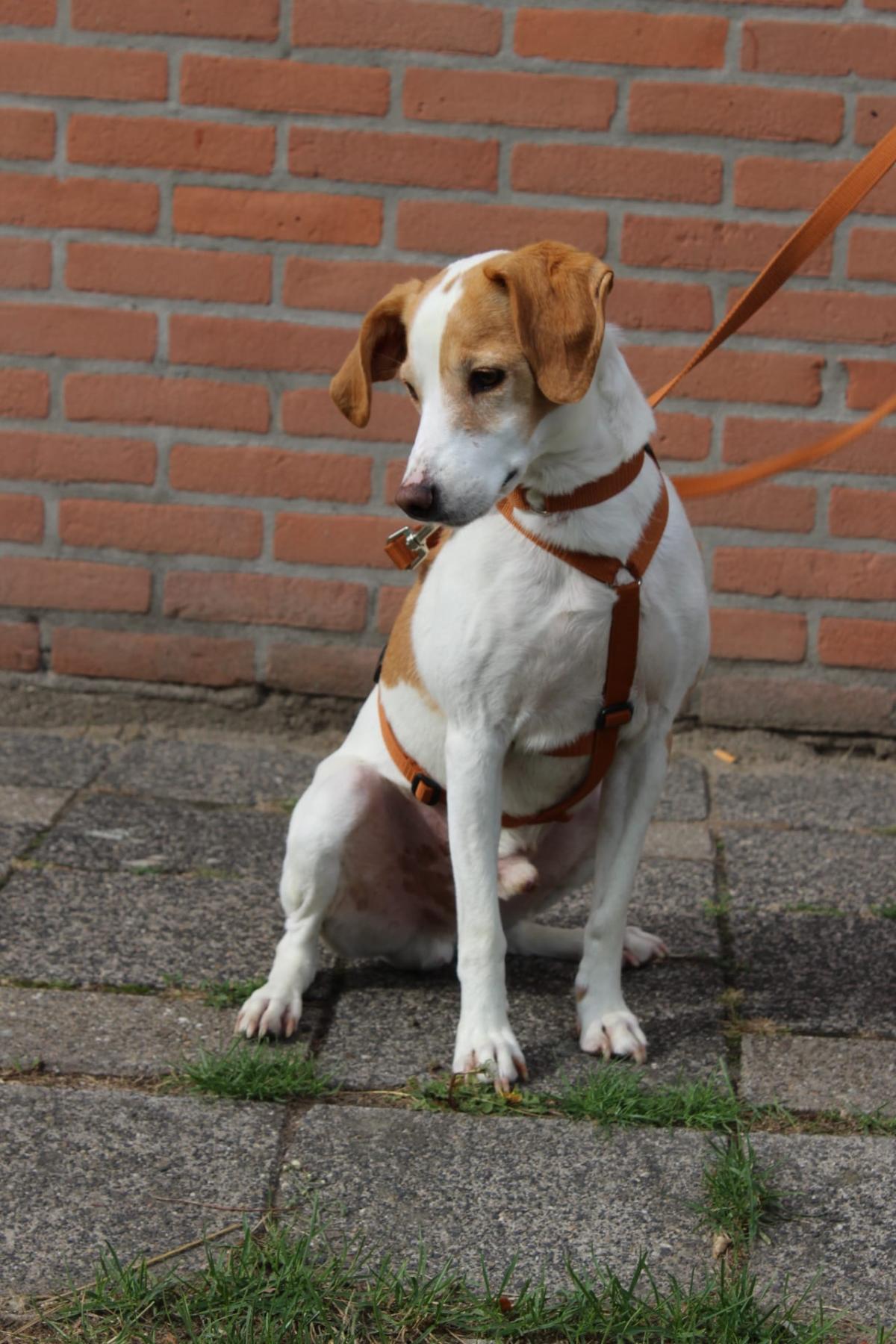 Nicko is geboren op 5 januari 2019, weegt 15 kilo en heeft een schofthoogte van ong 45 cm. Nicko is een harstikke leuk hondje. Dat hij in de steek is gelaten door zijn voormalig eigenaren, lijkt hem niet erg te deren. Hij is sociaal en heeft genoeg zelfvertrouwen. Het is een survivor, hij heeft lang voor zichzelf moeten zorgen, met behulp van aardige buren die hem te eten gaven. Nicko zit sinds kort in een gastgezin in Spijkenisse. Het gastgezin zegt dat hij ontzettend lief is. Hij komt heel graag voor een kroel naar haar toe. Nicko vindt het prettig de boel vanuit de hoogte te observeren, dat is iets om rekening mee te houden in de tuin (dat hij bijvoorbeeld niet via een klikobak de muur opspringt en zo de tuin uit kan gaan). Gastgezin is dat nu aan het afleren en dat gaat goed. Hij is goed leerbaar. De riem omdoen vindt Nicko nog wat spannend, misschien heeft hij daar geen fijne ervaring mee maar als dit voorzichtig wordt gedaan, gaat het prima.