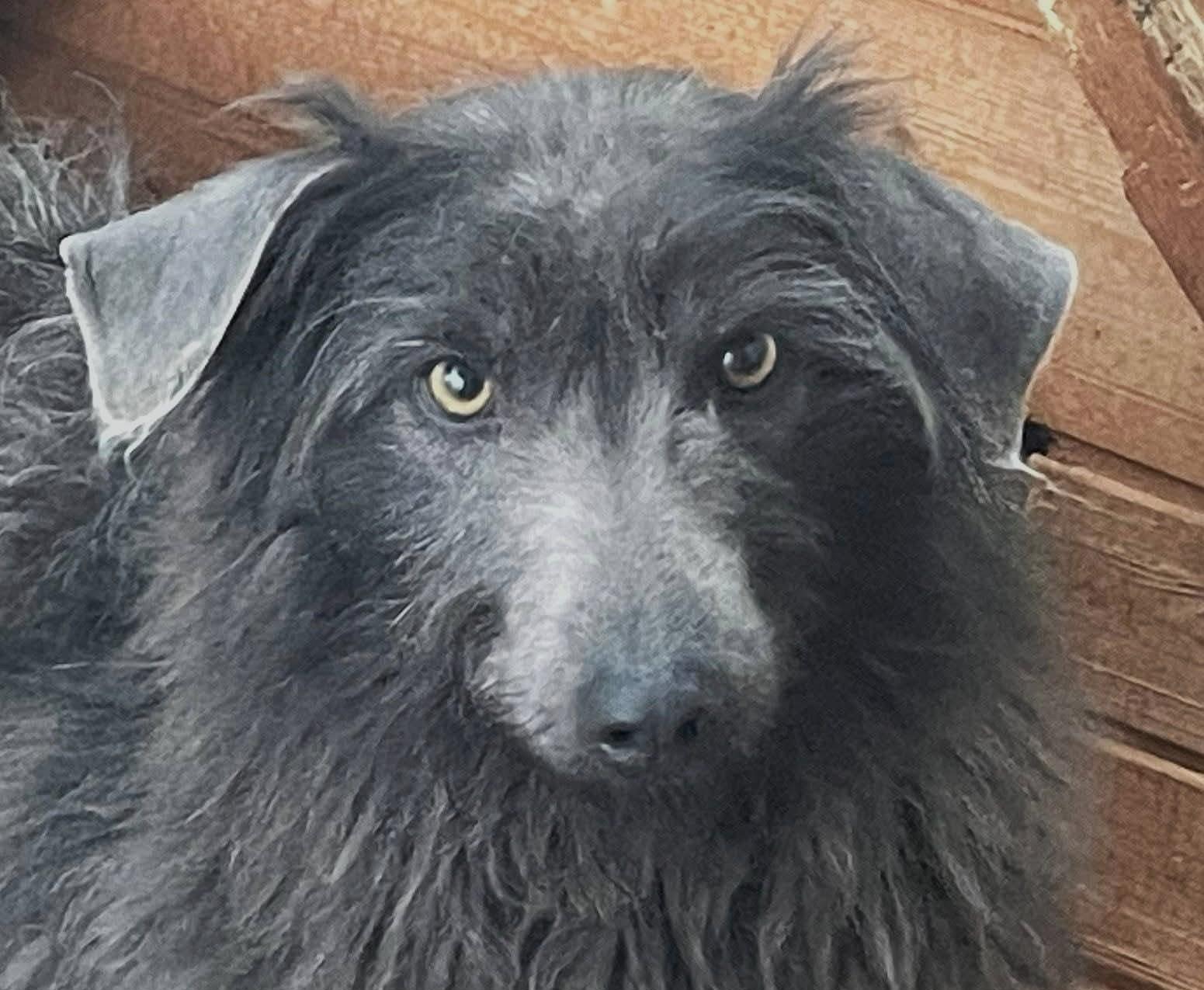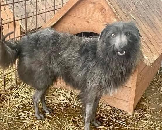 Grijze, halflange vacht die haar een unieke uitstraling geeft.