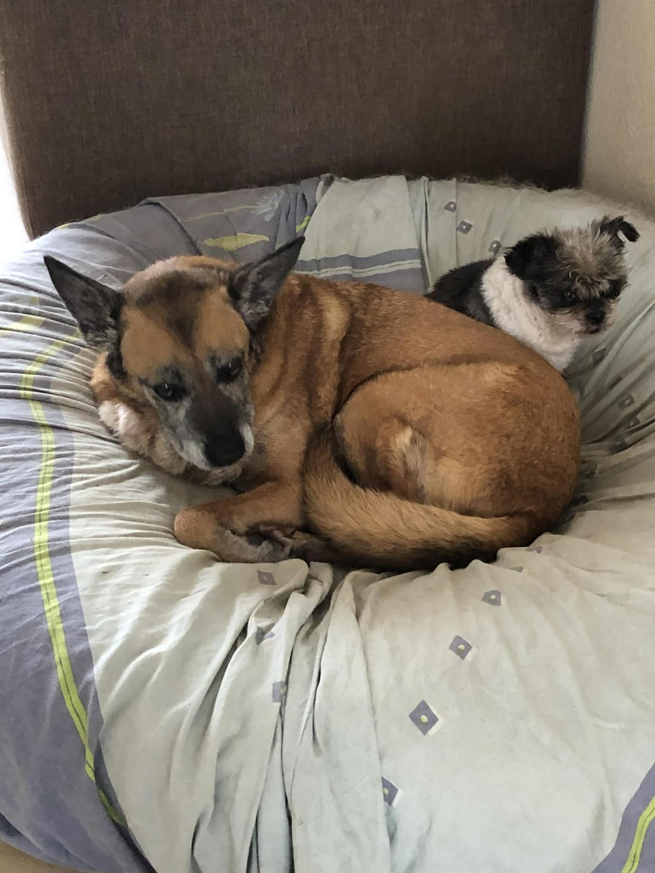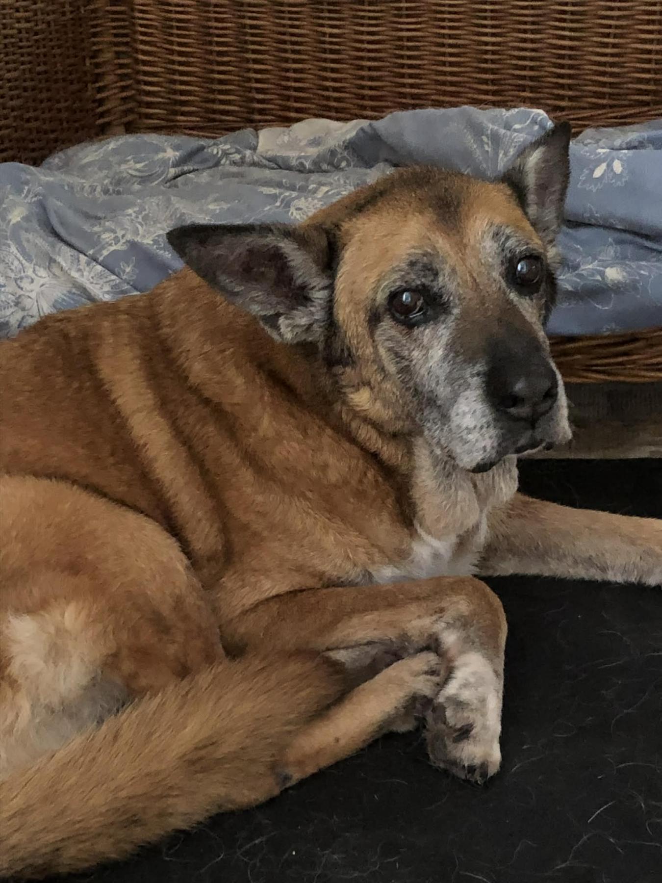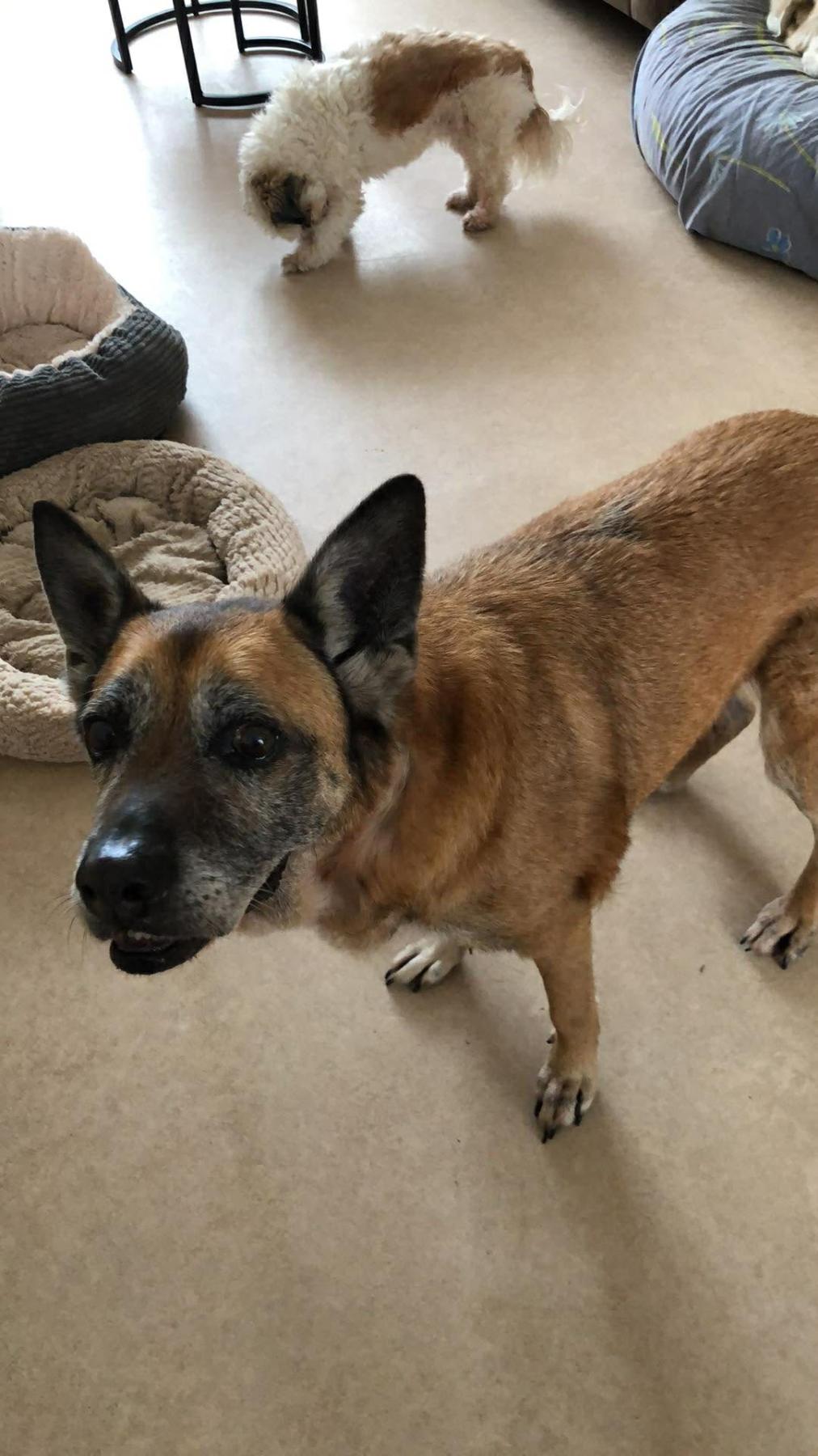 Nora is zeker niet de jongste meer. Haar bespiering is minder, heupen ook. Ze heeft hier (nog) geen medicatie voor. Het is een beetje een oud krakkemikje. Maar wel een die nog zin heeft in kriebels, wandelingen, verwend worden, lekkers krijgen enz. Ze is op zoek naar mensen die een groot hart hebben voor oudjes en haar nog een mooie verwentijd willen geven. Dat verdient ze en haar nieuwe baasje(s) zal/zullen geen spijt krijgen van Nora als nieuwe huisgenoot.