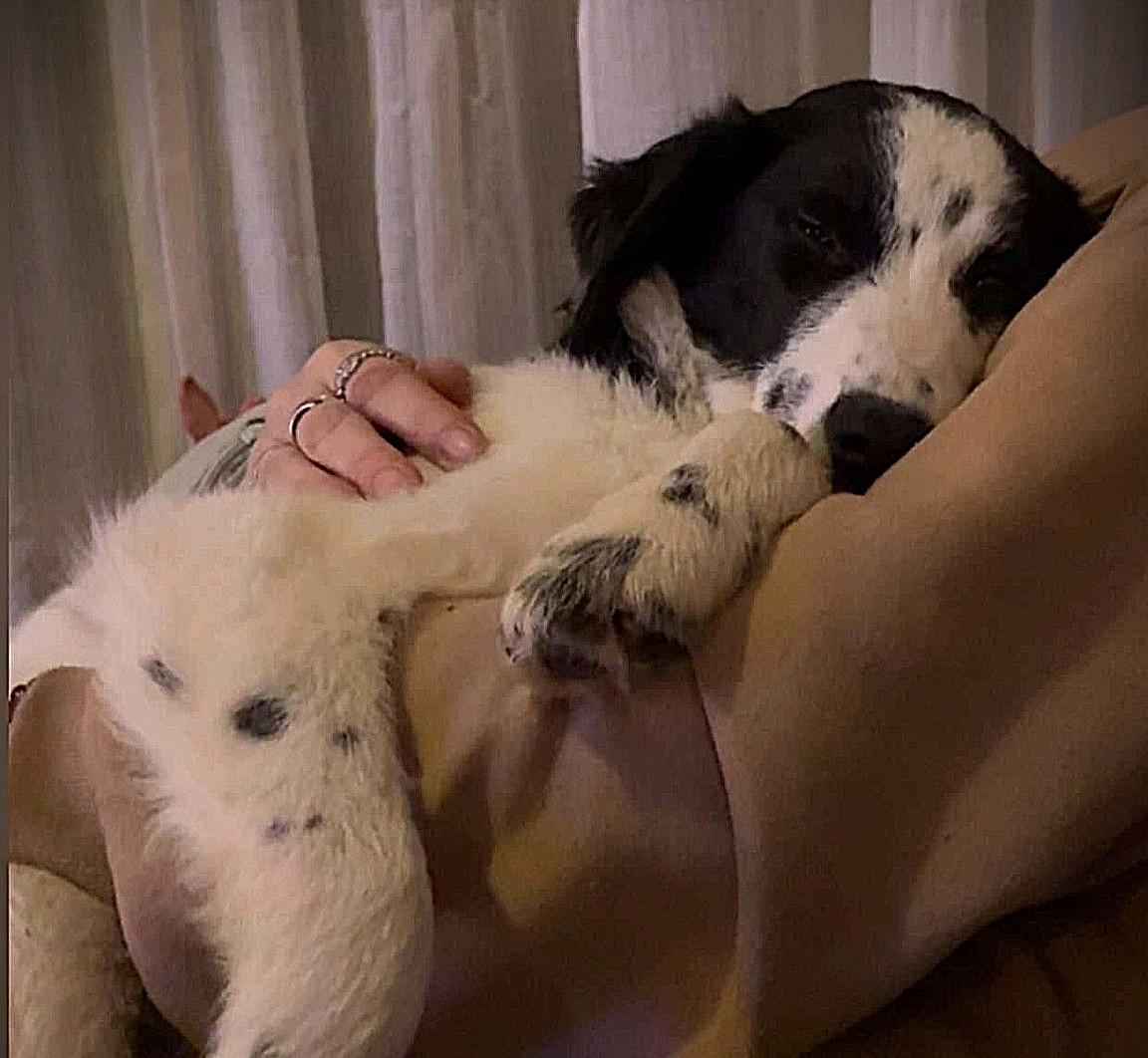 Dit is **Panda**, een schattig teefje van **7 maanden oud**.Volwassen ongeveer **45 cm hoog**. Panda is een vrolijke en speelse pup die het goed doet met andere honden 🐕.