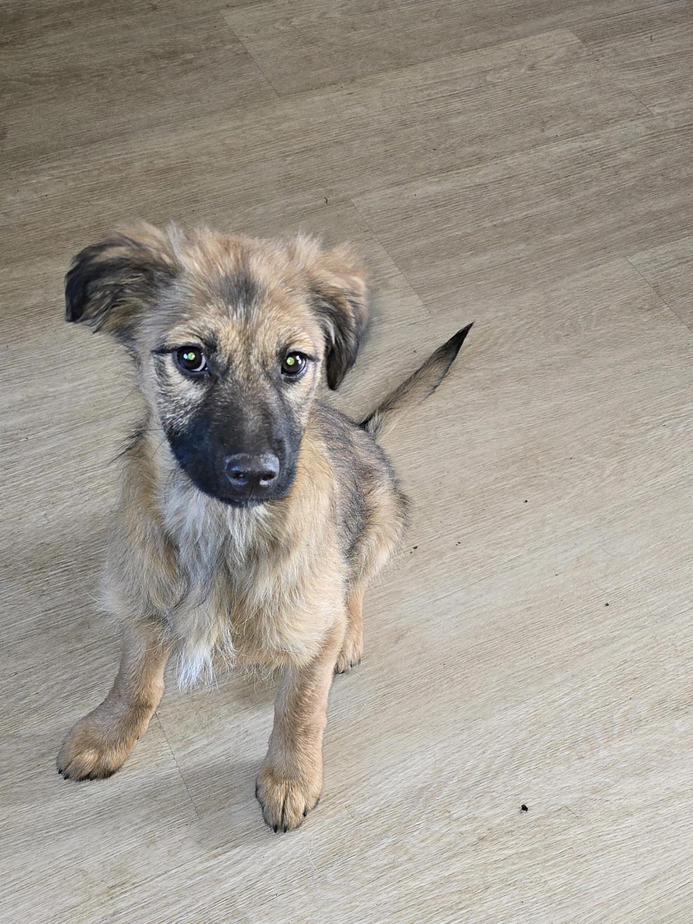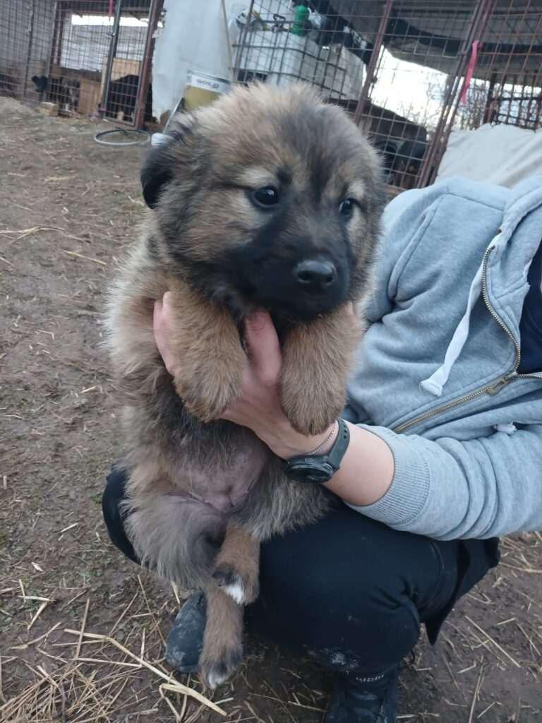 Kleine Poli werd met nog twee pupjes en hun moeder Octavia op straat gegooid in Bosnië.