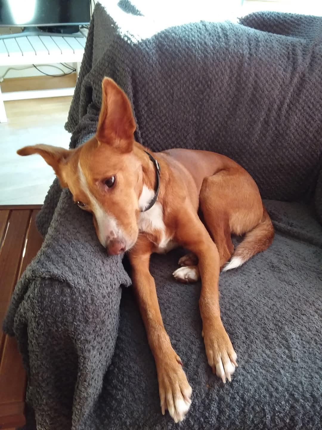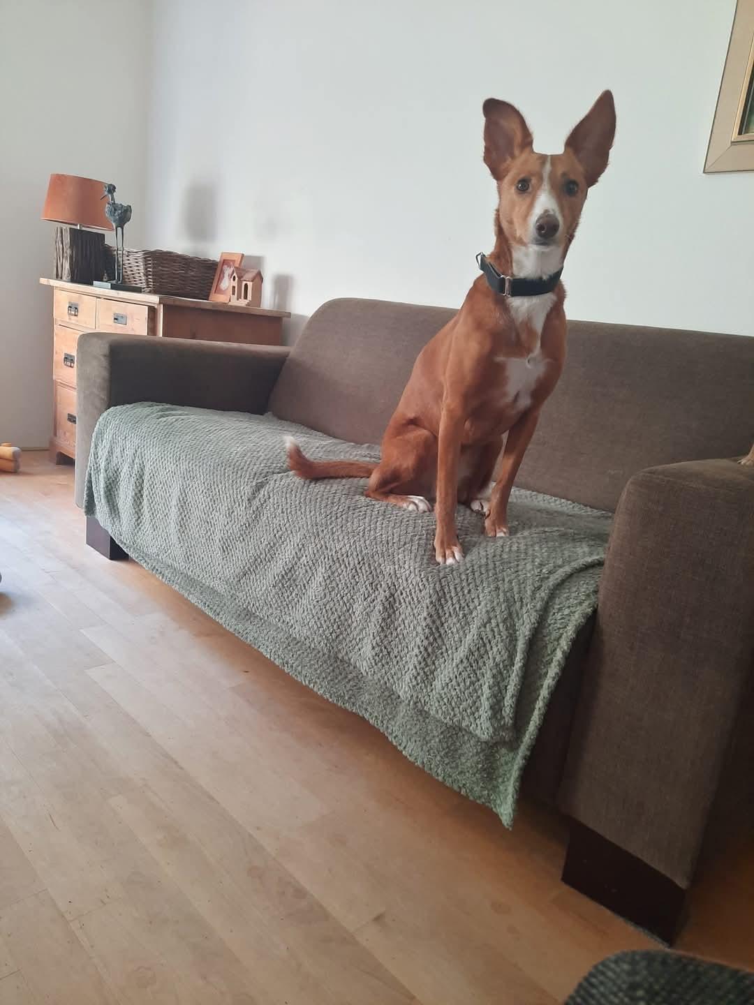 Princesa is bij een eerste ontmoeting een beetje terughoudend, wat past bij het ras. Ze is heel lief en aanhankelijk. Het is een juweel van een Podenco een echt prinsesje!nOok is ze heel sociaal met andere hond(en), ze doet ze het supergoed in de ro