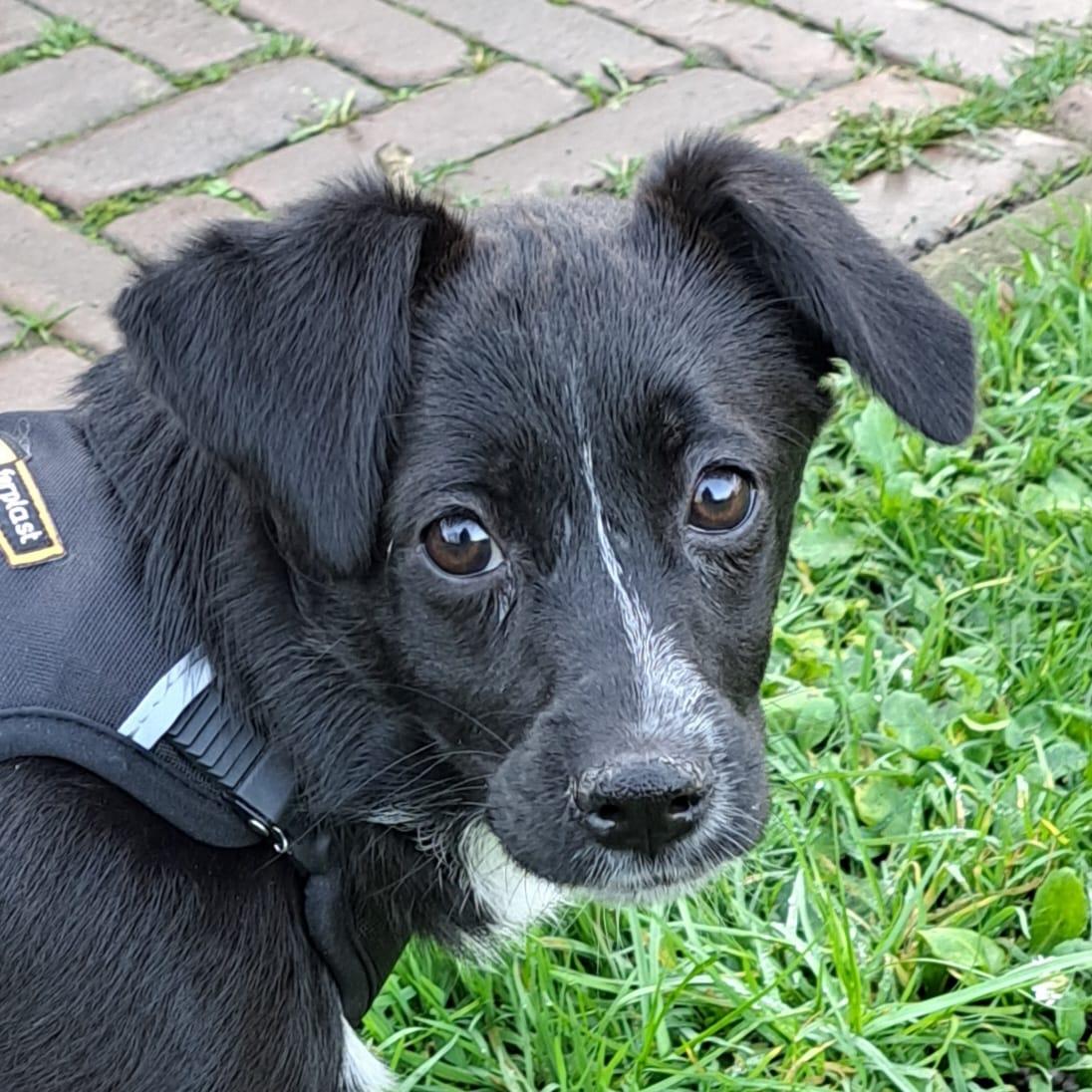 Bibi is een mix teefje met een geschatte geboortedatum van 25 mei 2025 en we verwachten dat ze ongeveer 35 cm hoog wordt. (11/25