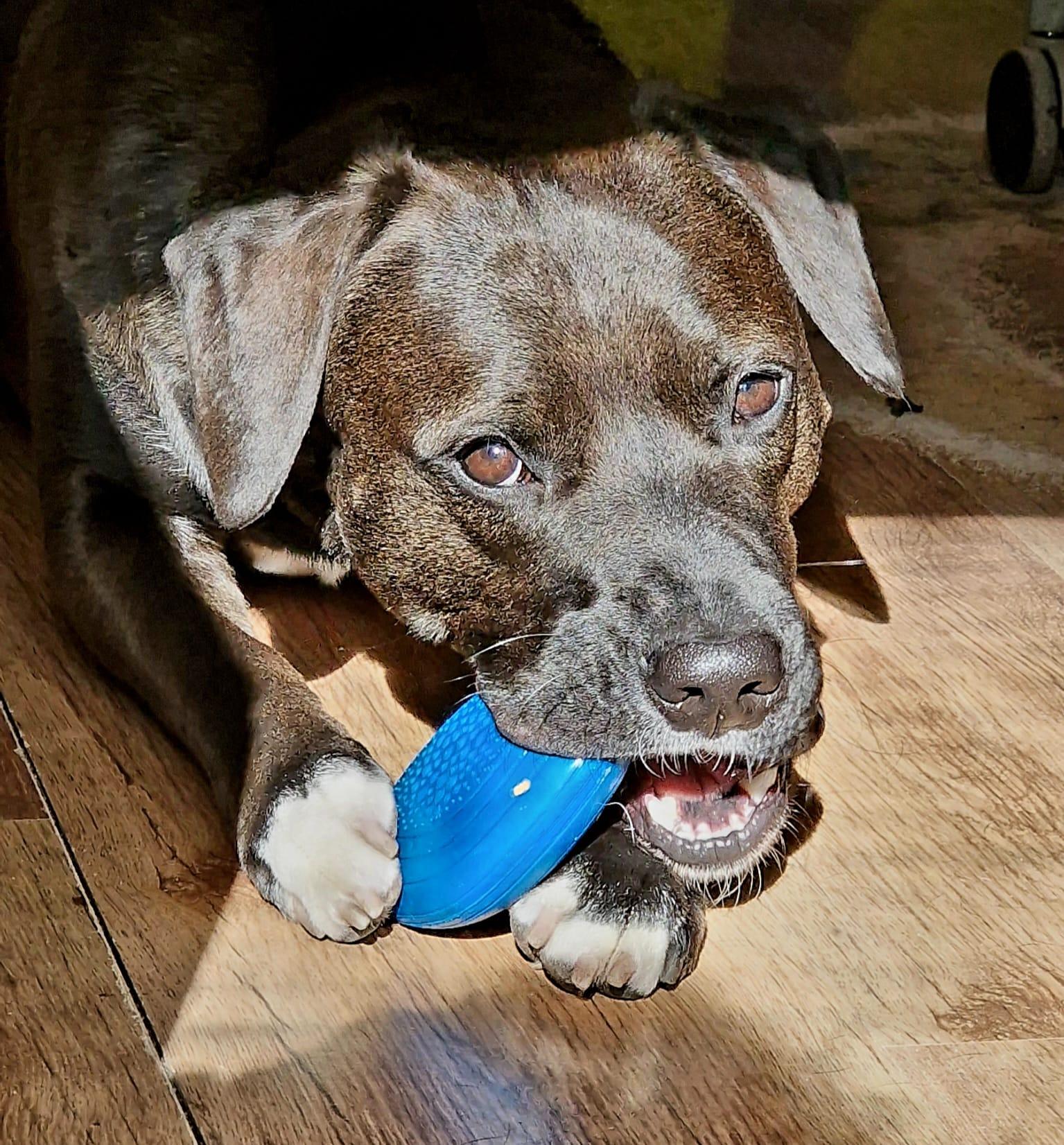 Maak kennis met REZZ, een vijfjarige gecastreerde reu boordevol energie en levenslust. Deze vrolijke hond is altijd klaar voor actie: rennen, spelen, wandelen… stilzitten is eigenlijk niets voor hem 😉