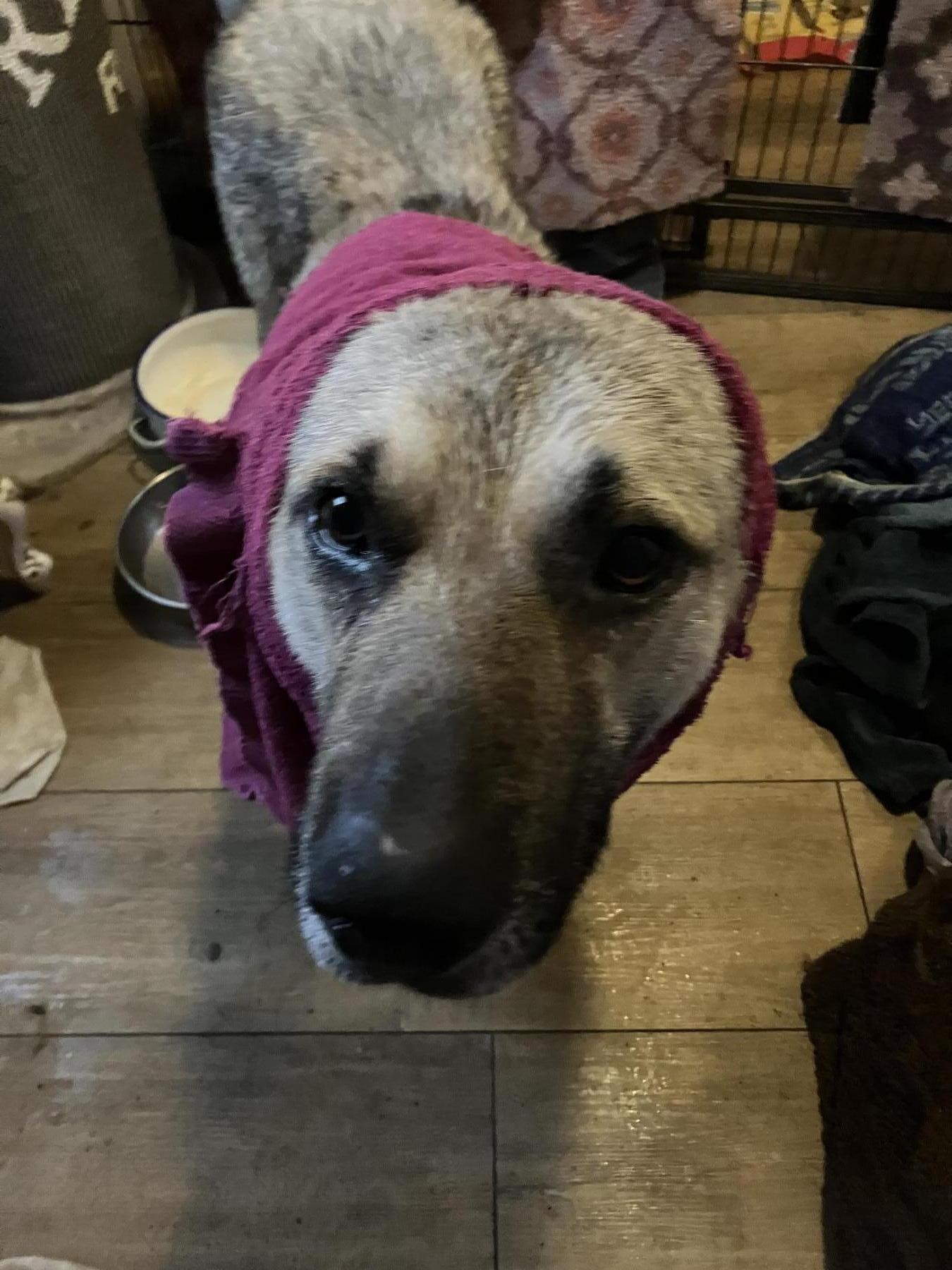 Met een bloedende hoofdwond belandde hij gelukkig bij onze rescuer.