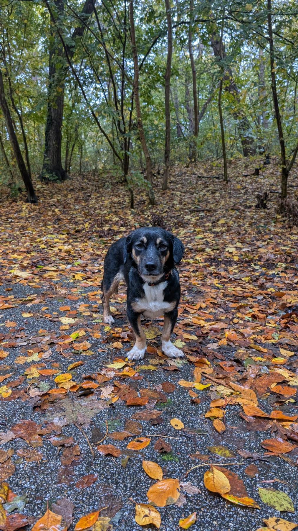 She’s wonderful on walks, happily trotting beside you and even able to walk off-leash. Robyn can be a little nervous around other dogs, cars, and loud noises, but she’s opening up more each day and learning that the world isn’t so scary after all. Having another confident dog around really helps her blossom and brings out her playful side.